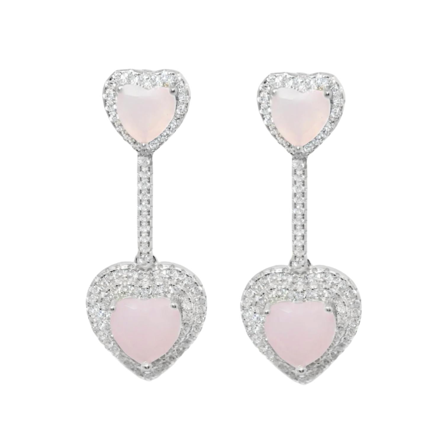 Easy and elegant earrings to complement any outfit. Add a touch of romance to your ensemble with the Women's Sterling Silver Cubic Zirconia Heart Halo Dangling Earrings by Allyanna Gifts. Crafted from sterling silver, these earrings feature a pink heart-shaped cubic zirconia encircled by a shimmering halo, measuring approximately 1.5" in height. Their lightweight design ensures comfort for both everyday wear and special occasions, enhancing any outfit with feminine elegance. Elevate your jewelry collection with these sparkling earrings, perfect as a gift or a treat for yourself.