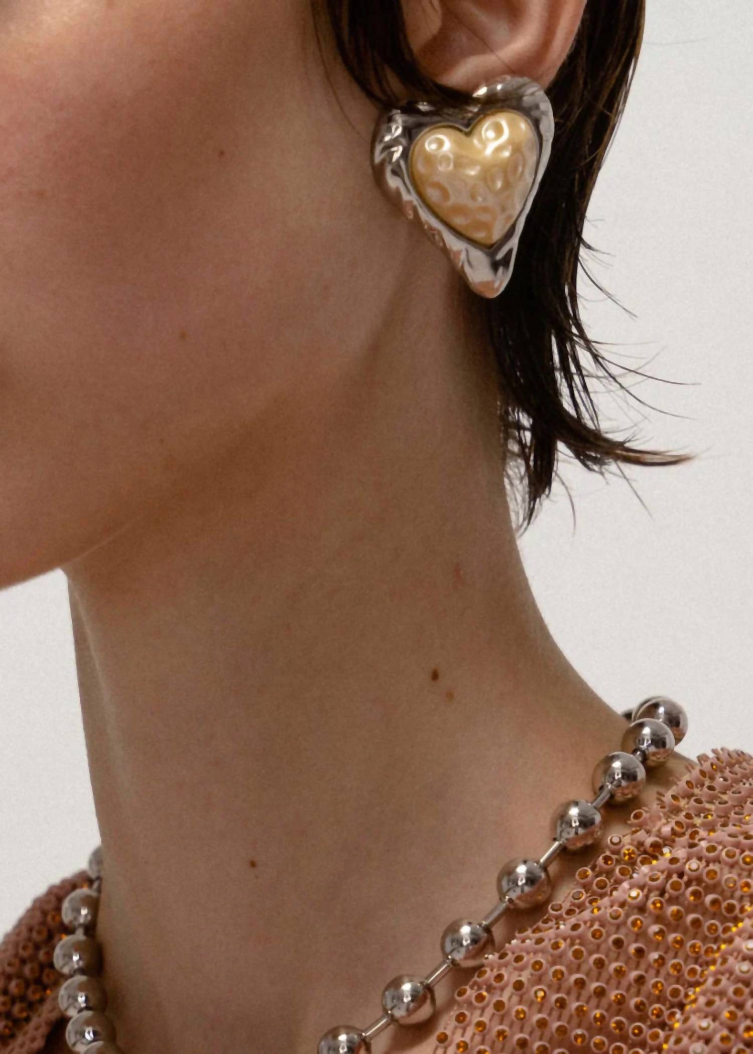 eye-catching earrings for every occasion. Elevate your accessory collection with the Julietta Women's Heart Studs Earrings, a chic and versatile addition for any jewelry wardrobe. Designed in a romantic heart shape, these earrings are crafted from fine mixed metal in a shimmering silver finish. Kindly note that as these are handcrafted, it is recommended to handle with care and avoid contact with liquids, salt water, and chemicals to maintain their shine. Store them in the pouch while traveling to ensure they remain in pristine condition.