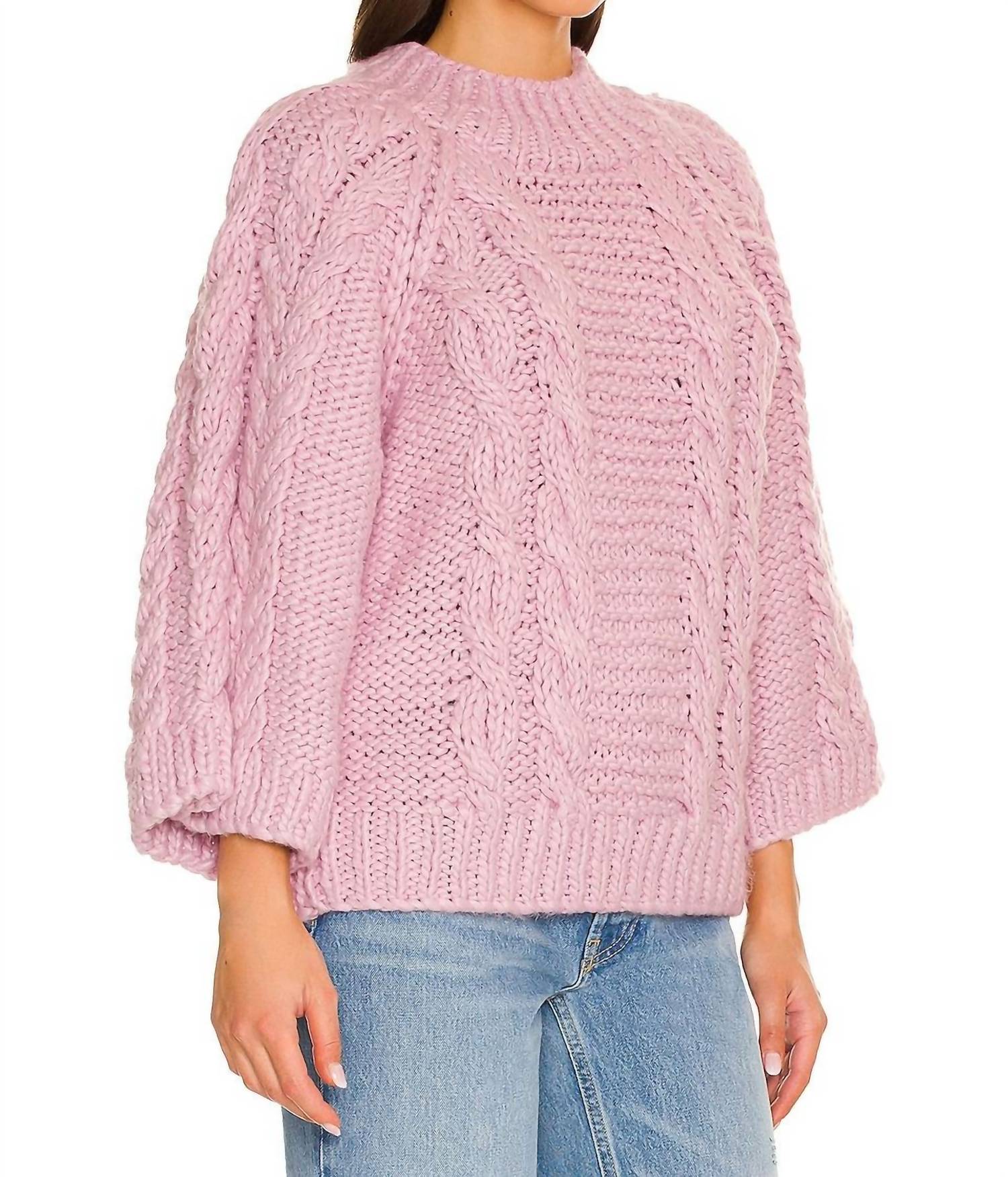 The ultimate go-to sweater, expertly crafted to provide the perfect combination of warmth and style. Its classic design and soft fabric make it a must-have addition to your wardrobe. Experience cozy elegance with the Andie Oversized Sweater by For Love & Lemons, a must-have for the winter season. This chunky cable knit sweater, made from a plush cotton blend, features long wide sleeves and a chic crewneck design. It offers a textured, boho-chic vibe in a stunning pink that celebrates vacation style. Closure: Pull on. Care: Hand wash. Perfect for adding a touch of warmth and charm to your Thanksgiving get-together wardrobe.
