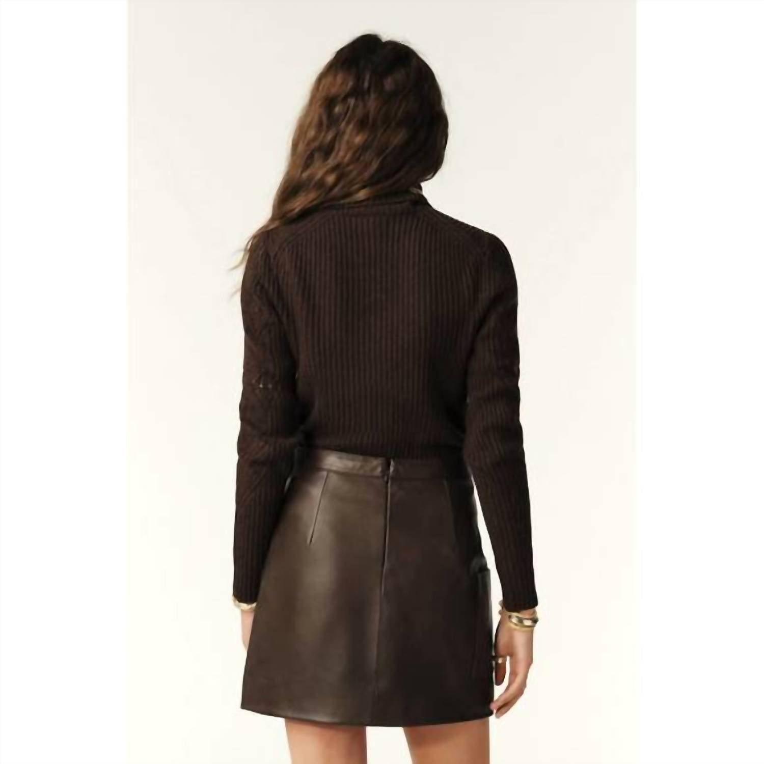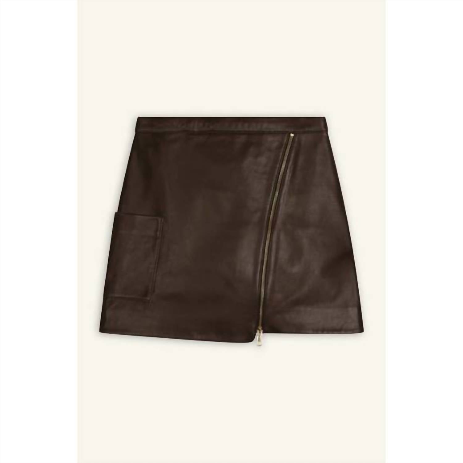 Tuck in your favorite tee for a more laid-back vibe. Crafted from 100% lamb leather, this low-rise mini skirt delivers a bold, modern look with its asymmetrical golden metal zipper running down the front. A practical side patch pocket adds utility, while a hidden back zipper ensures a smooth, seamless fit. Sleek, luxurious, and effortlessly striking, it’s the perfect mini skirt for making a statement.