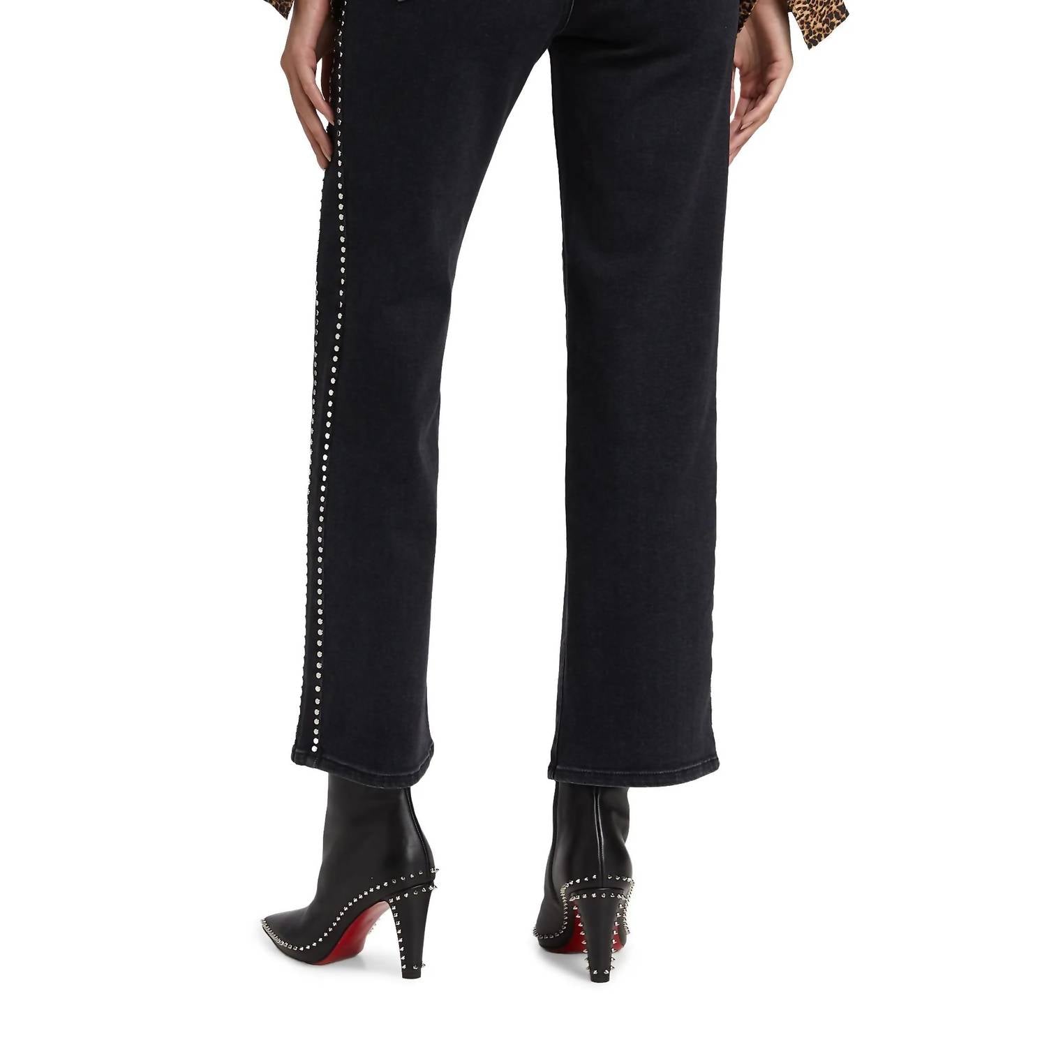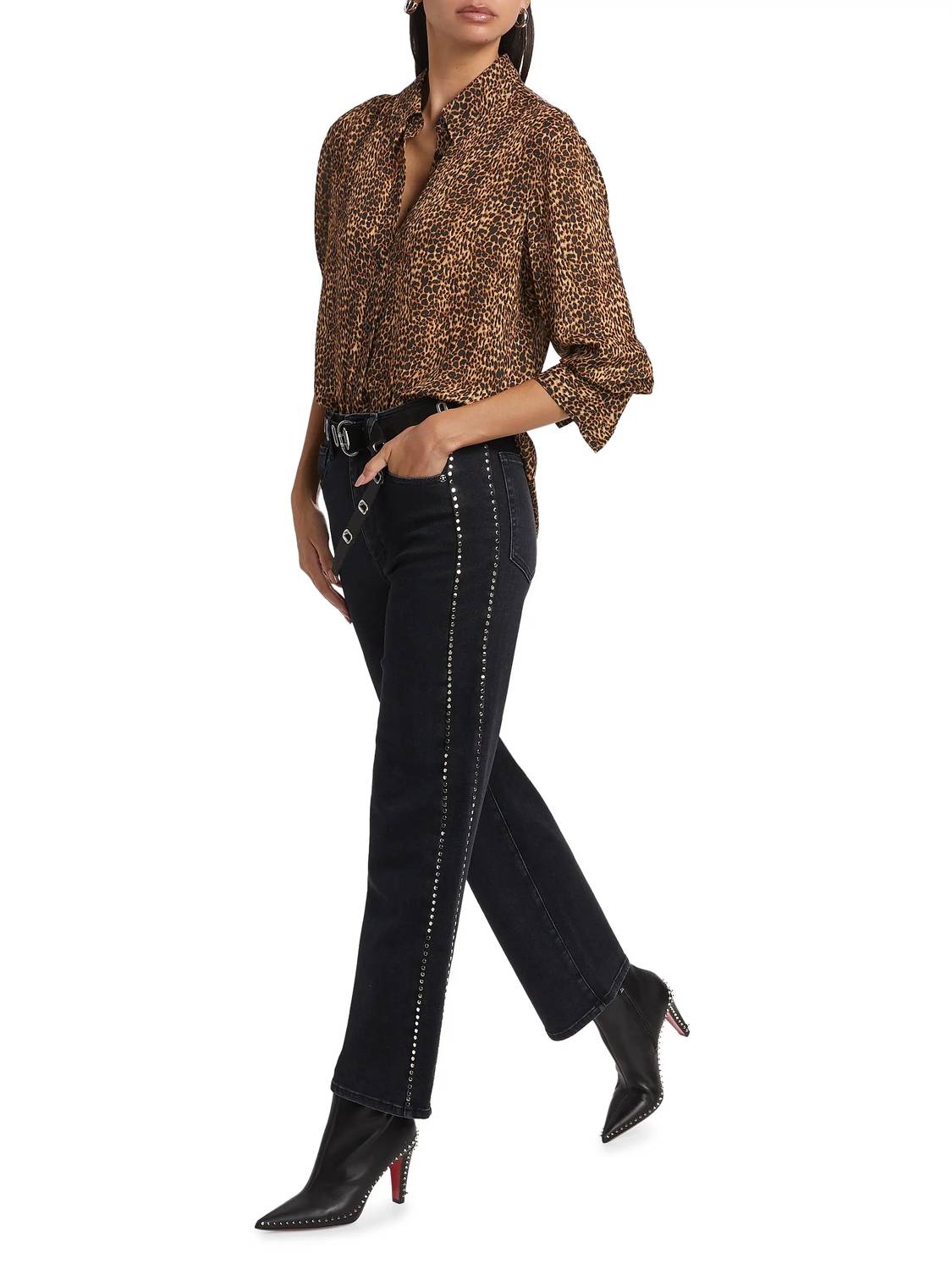 These must-have jeans are fit to perfection. Elevate your denim collection with FRAME's Le Sleek Straight Jeans in Astronaut, a stylish nod to Y2K trends. These jeans feature a mid-rise waist and a five-pocket style, embellished with studs for a unique touch. The composition includes a comfortable cotton blend: 81% Cotton, 11% Lyocell, 6% Elasterell-P, and 2% Elastane. Closure is secured with a zip fly and button, and they require dry cleaning. With a rise of approximately 11 inches and an inseam of about 28 inches, these jeans are perfect for a New Year's Eve concert or any fall occasion.