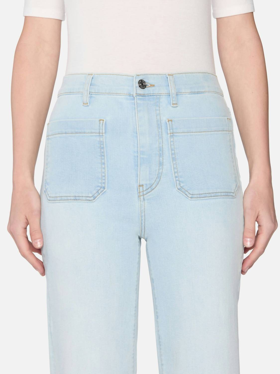 Comfortable and stylish, we love this cropped jean for all of the obvious reasons. Experience effortless style with the Anchor High Rise Cropped Pant by FRAME, designed in a calming powder blue. Featuring a relaxed fit, these wide-leg denim pants have a flattering high rise with a zip closure and provide front patch pockets for added function. Composed of 49% Cotton, 21% Pre Consumer Recycled Cotton, 17% Post Consumer Recycled Polyester, 11% Lyocell, and 2% Elastane, they boast ultra-stretch technology with an 11.5" front rise, a 27.5" inseam, and a 20.5" leg opening. Care for them easily with machine wash cold instructions, ensuring they maintain their minimalist charm season after season.