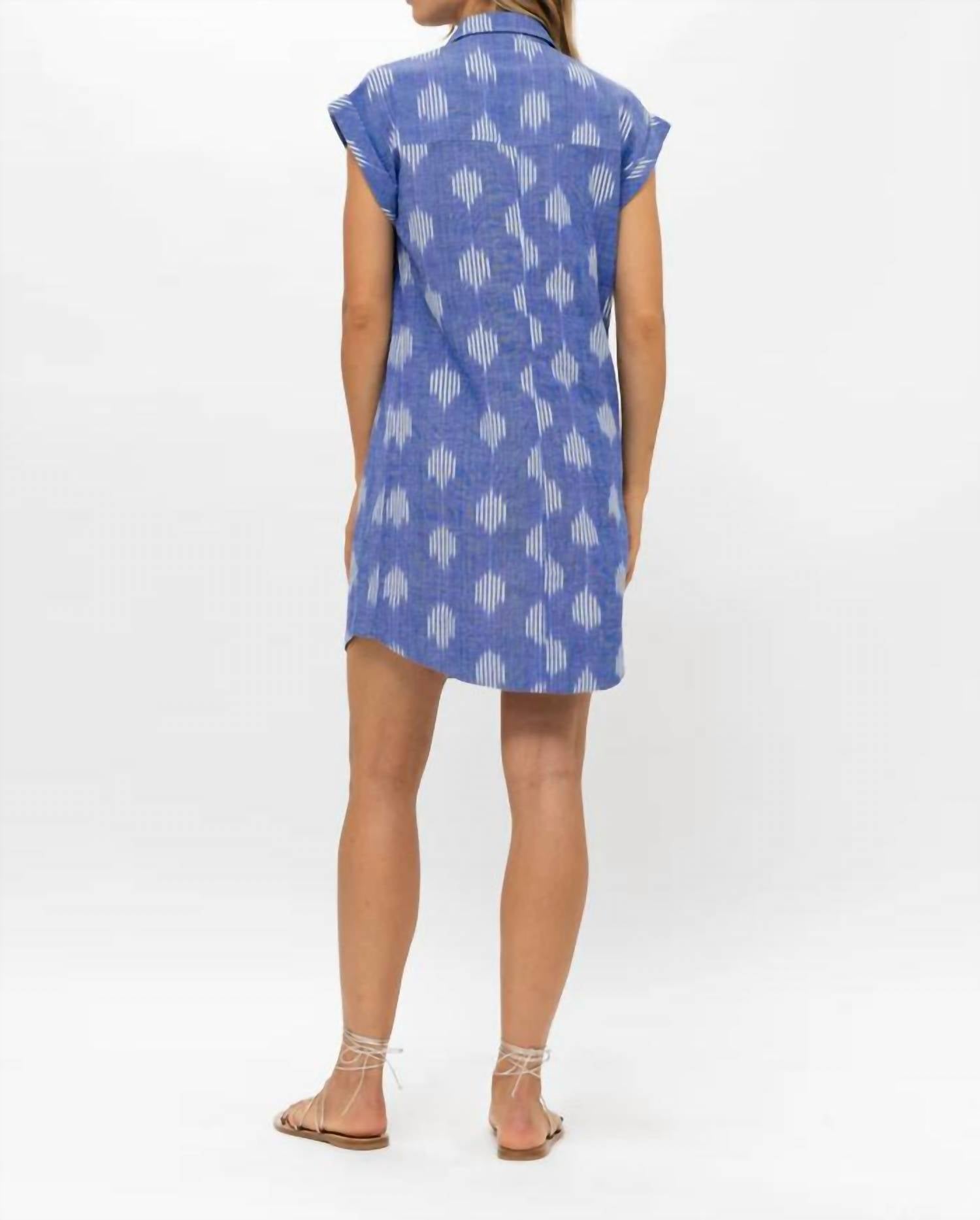 Pair with your favorite sandals for an effortlessly chic look. Explore the intricate beauty of our handwoven ikat design, Chatham Blue. Hand-loomed and dyed by Indian artisans Pullover style Button detail Pockets Model is 5'8" and is shown wearing a size Small Care Instructions Wash on a cold delicate cycle with gentle detergent Lay flat or hang dry Turn inside out before washing if there are appliqués or gold-painted detailing on the garment All styles can be dry cleaned and steamed
