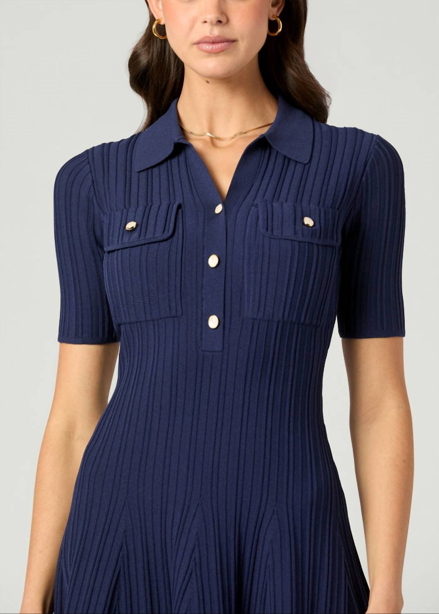 A short and breezy dress for those warmer days. Introducing the Antonia Mini Dress by Shoshanna, a chic choice for summer occasions. This navy, solid-patterned dress features short sleeves and a classic collar, perfect for holiday parties or workwear. Crafted from a viscose blend with 65% Viscose and 35% Nylon, it offers a comfortable and stylish fit. Closure: Button closure. Care: Dry clean only.