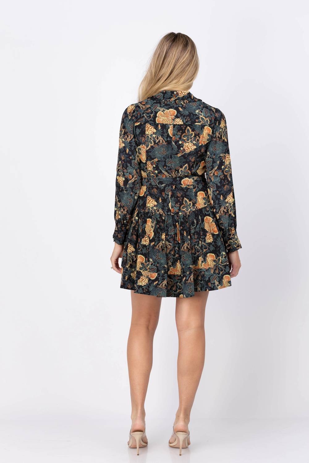 A short and breezy dress for those warmer days. Discover the Simona Silk Mini Dress by Ulla Johnson, perfect for elevating your dinner party ensemble this spring. This patterned A-line dress features long sleeves with refined button cuffs and a ruffled collar, adding a touch of elegance. Its luxurious silk composition and self-tie belt create a flattering silhouette, while the button-front design adds classic allure. Crafted in the color Nuit, the hem stylishly falls above the knee for a graceful yet understated look.