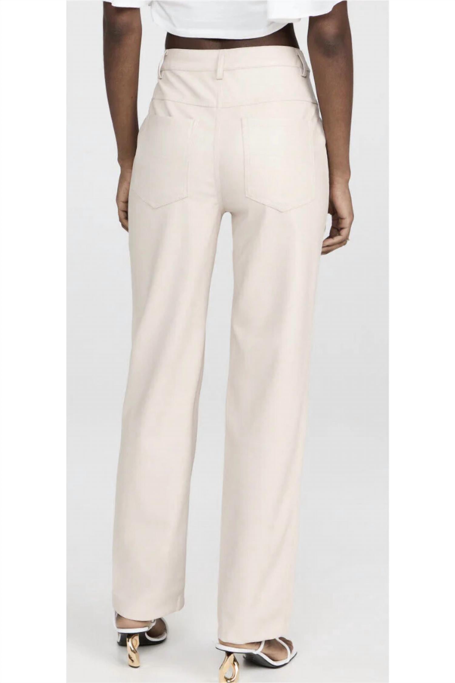 Stylish choice crafted from light-hued vegan leather in a comfort fit. Feature a straight leg and high waist rise. 50% Polyester, 50% Polyurethane. Button closure. Hand wash. Include pockets.