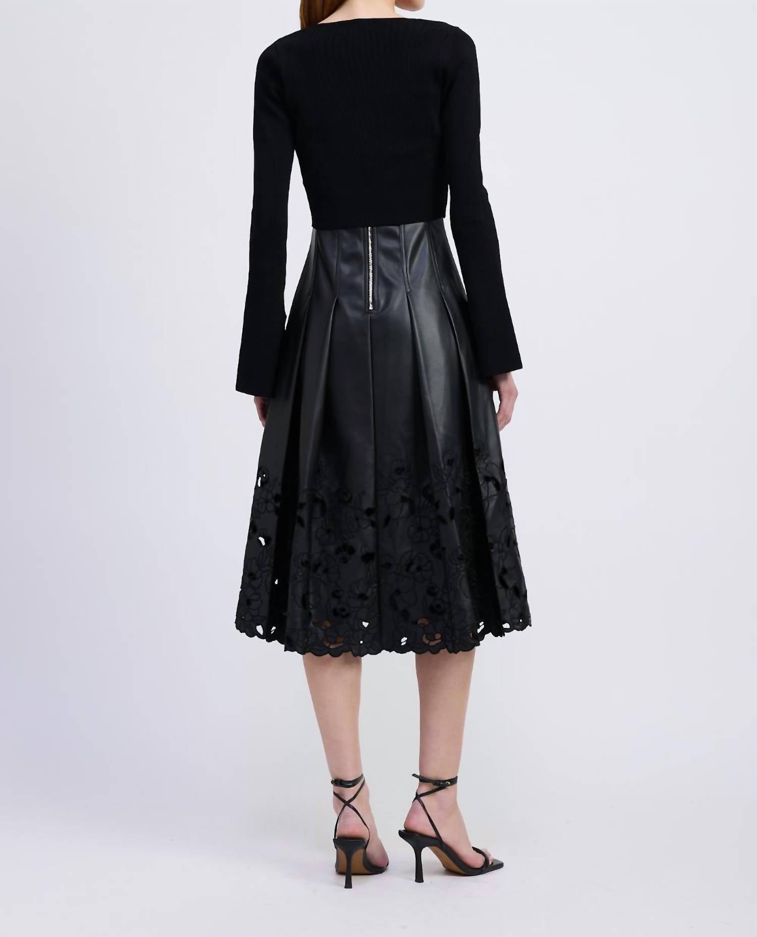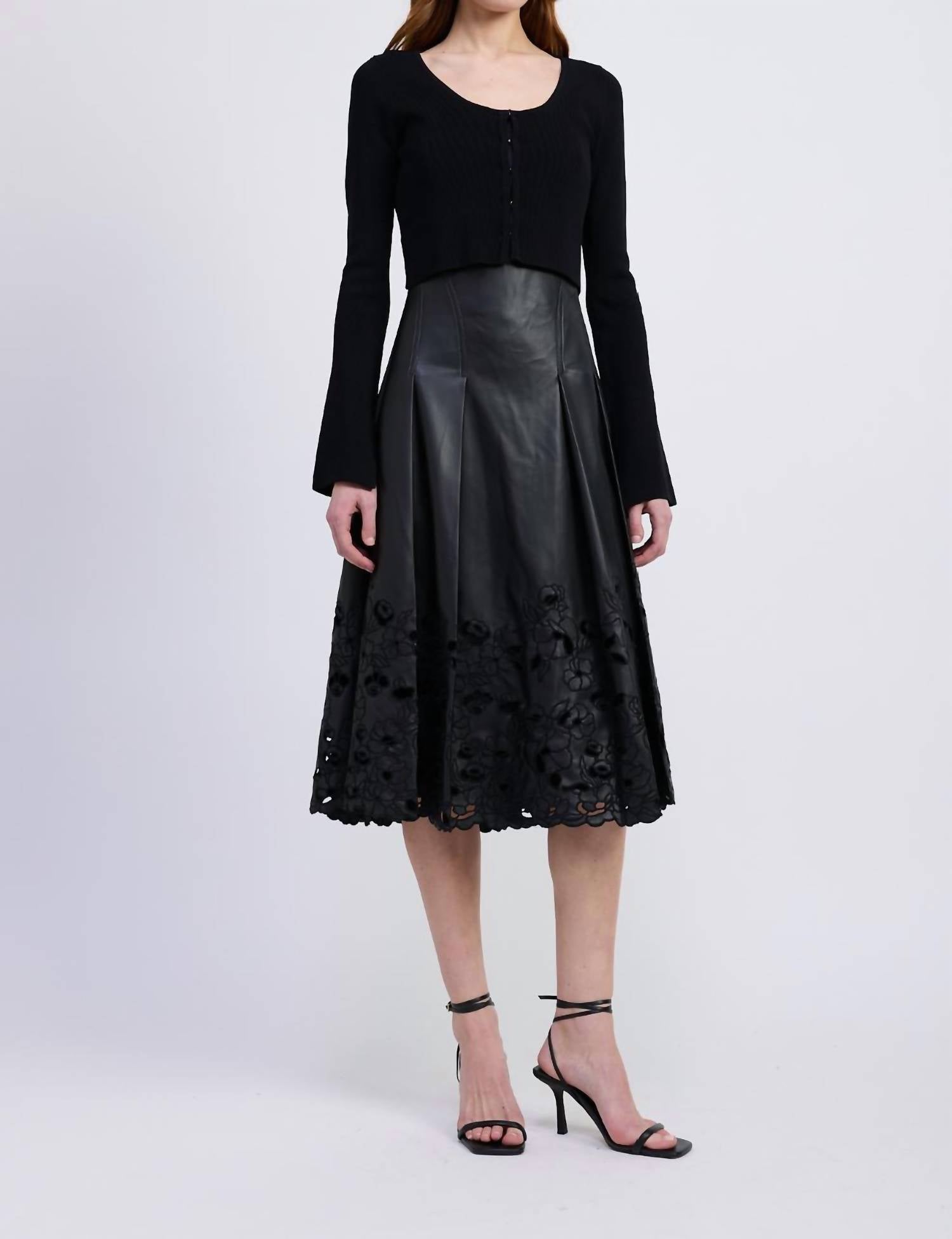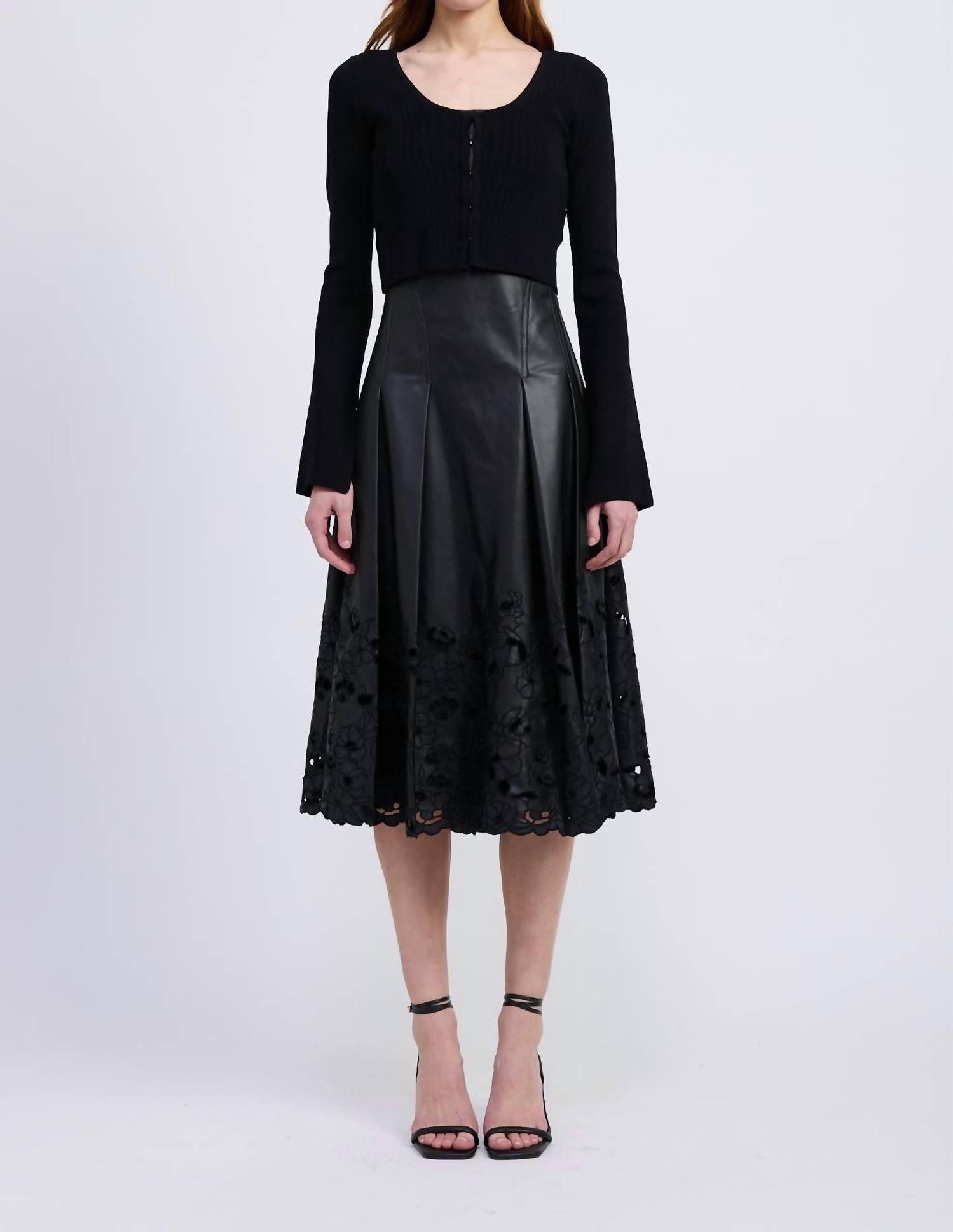 Throw this adorable cardigan over any cami or tank top. Introducing the Calix Crop Cardigan by En Saison, an exquisite piece in solid black to enhance your wardrobe. This cardigan features long, elegant bell sleeves and a flattering cropped length, crafted from luxurious knit fabric. Closure: Button closure. Care: Dry clean only.