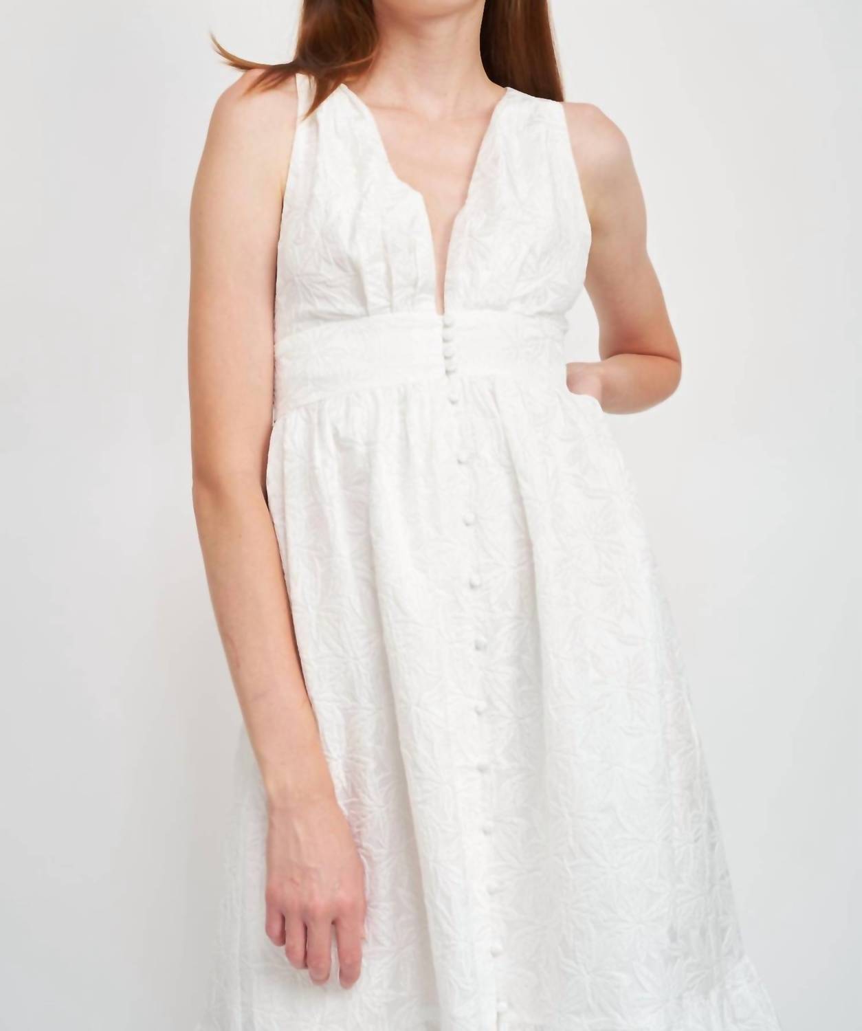 Style this maxi with your favorite statement necklace and sandals for the perfect look. This button-down maxi dress features embroidered covered buttons. It is made from 100% polyester with a 100% cotton lining. Hand wash is recommended. The model is 5'9" and wears a size Small.