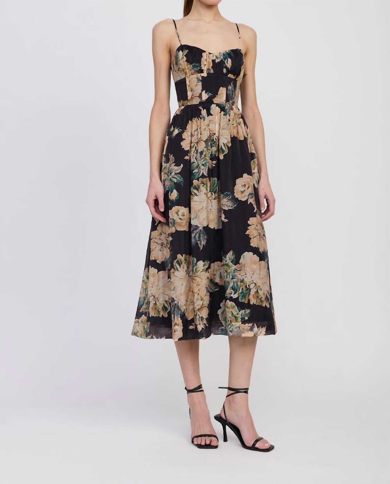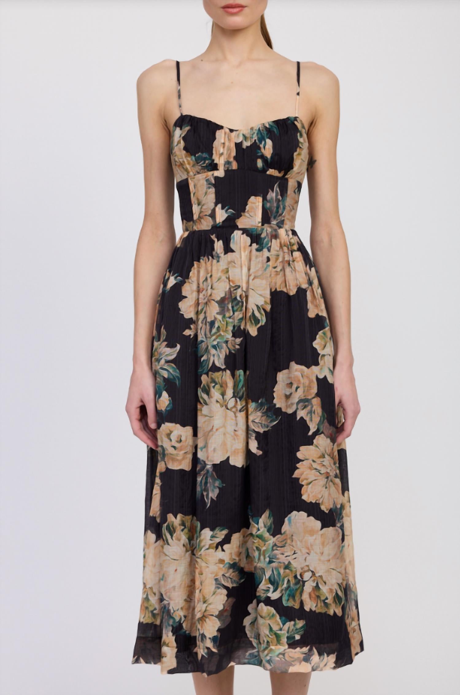 Just add slides or mules and you are good to go. The Peregrine Midi Dress by En Saison offers an elegant floral pattern, ideal for a Boho Chic vacation vibe. Featuring spaghetti straps and a sweetheart neckline, this A-line silhouette ensures a flattering fit. Designed in black, it offers a timeless appeal perfect for spring or Thanksgiving occasions. With a pull-on closure, it requires hand washing and line drying for care.
