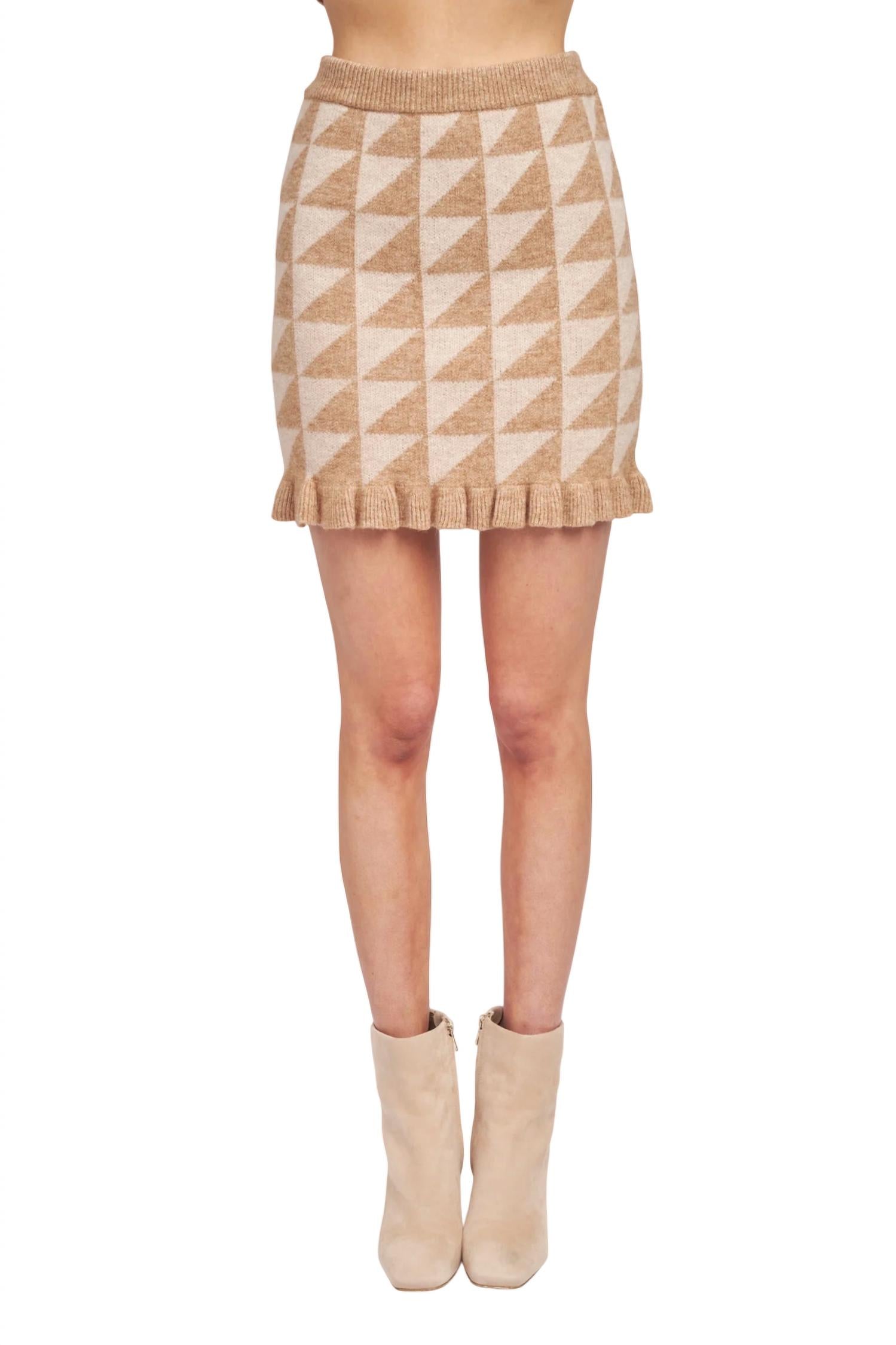 Show just the right amount of leg in this fit flattering mini. Features a fitted jacquard knit mini skirt. 40% Acrylic, 32% Nylon. 28% Polyester.