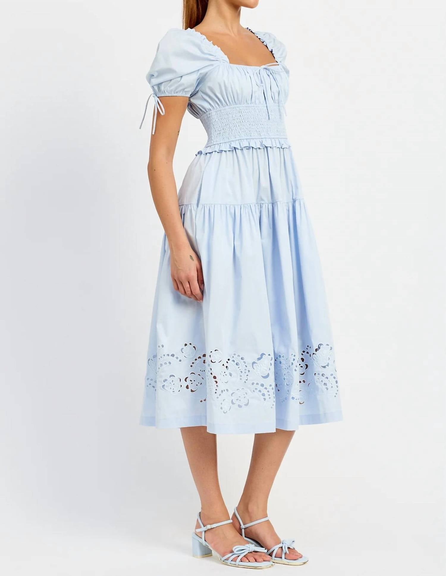 The perfect length dress does exist. Introducing the En Saison Abigail Midi Dress in a captivating blue hue, a spring essential with a Y2K twist. This A-line silhouette features short sleeves and a flattering pull-on closure, highlighted by a charming square neckline. Meticulously crafted from a 60% cotton, 35% nylon, and 5% spandex blend, this lined garment originates from abroad and promises sophistication with its solid pattern. Care: Hand wash recommended for maintaining its elegance.