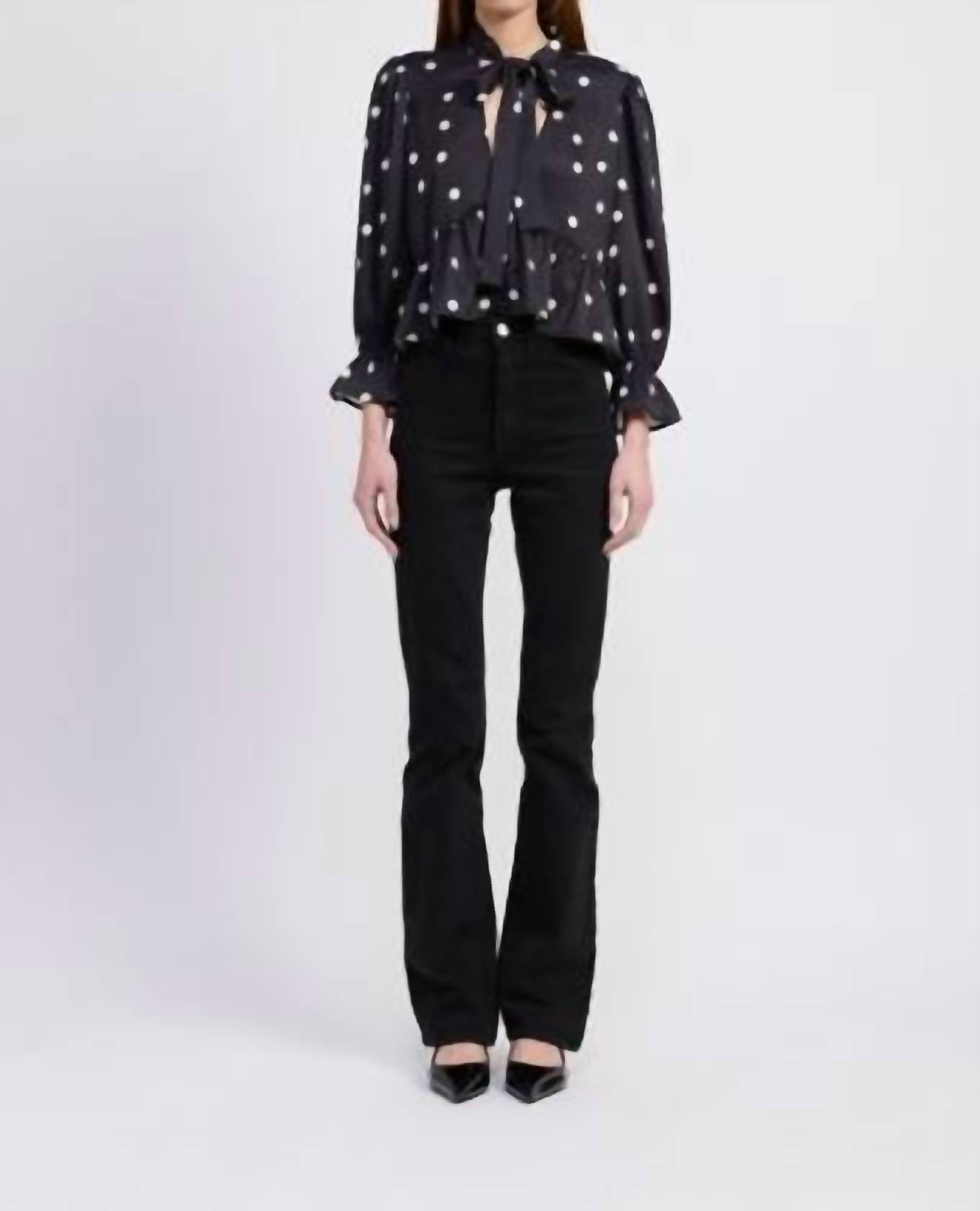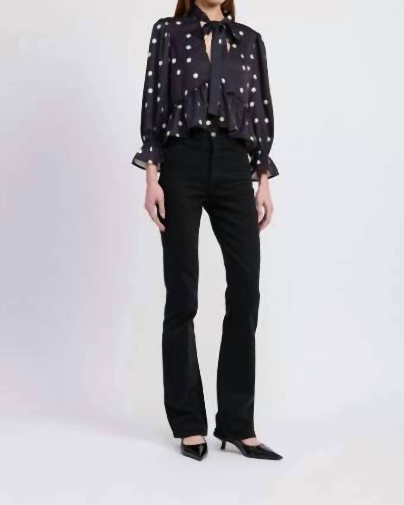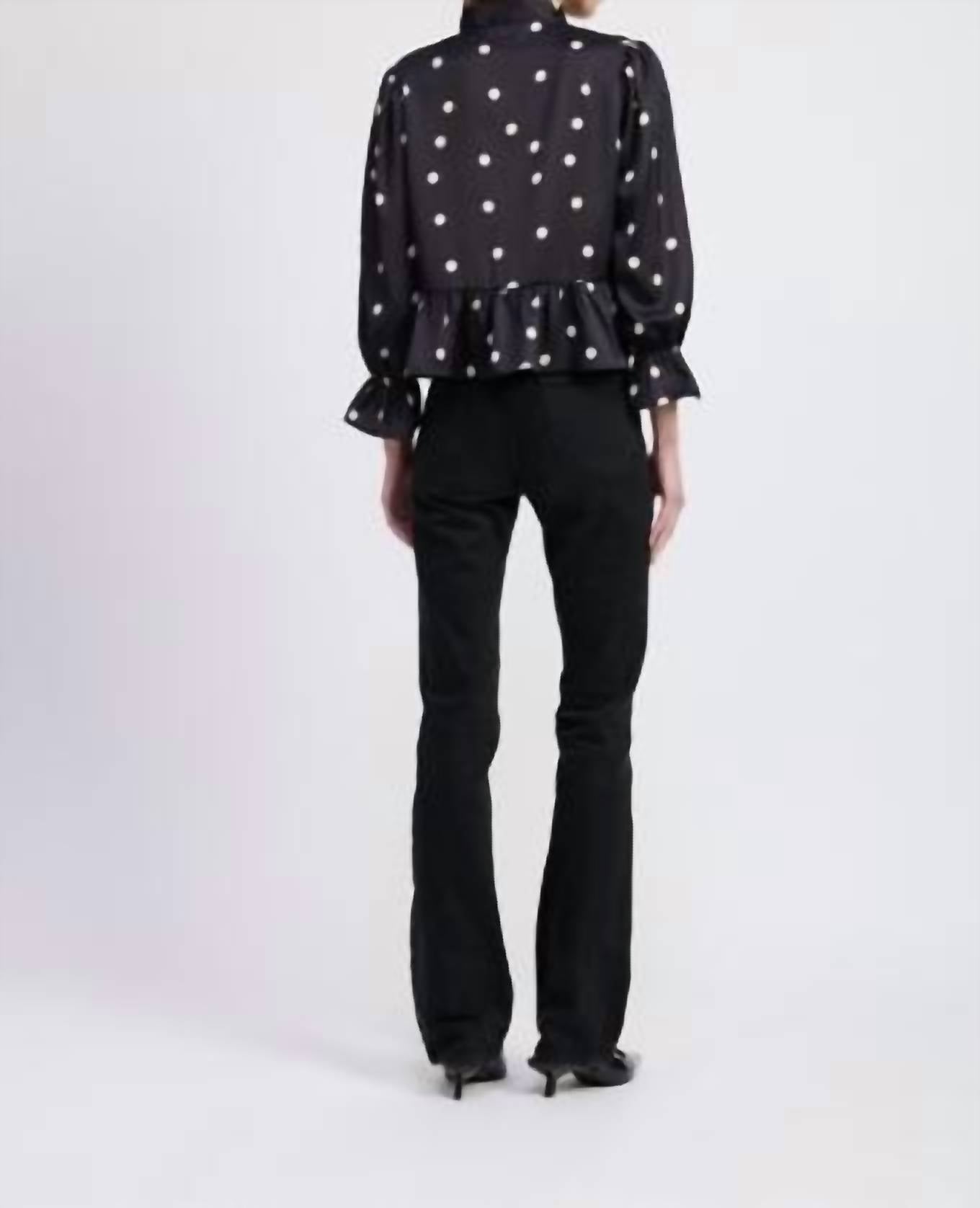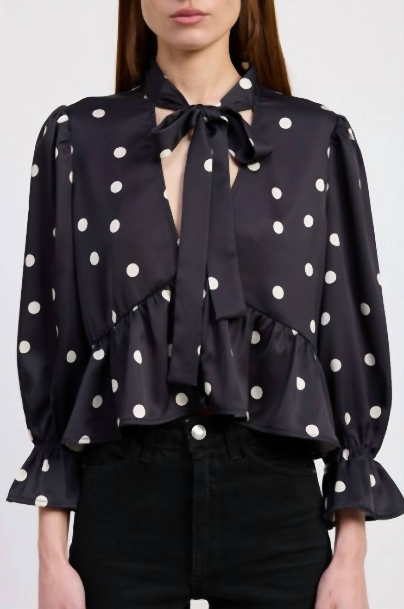 A timeless blouse that will never go out of style. Introducing the Floretta Dotted Top by En Saison, a chic addition to your spring workwear collection in elegant Black Ivory polka dots. This women's blouse features a stylish V-neck and long sleeves, offering a sophisticated touch. Closure: Pull on. Care instructions: Hand wash. Perfect for anniversaries or Valentine's Day occasions.