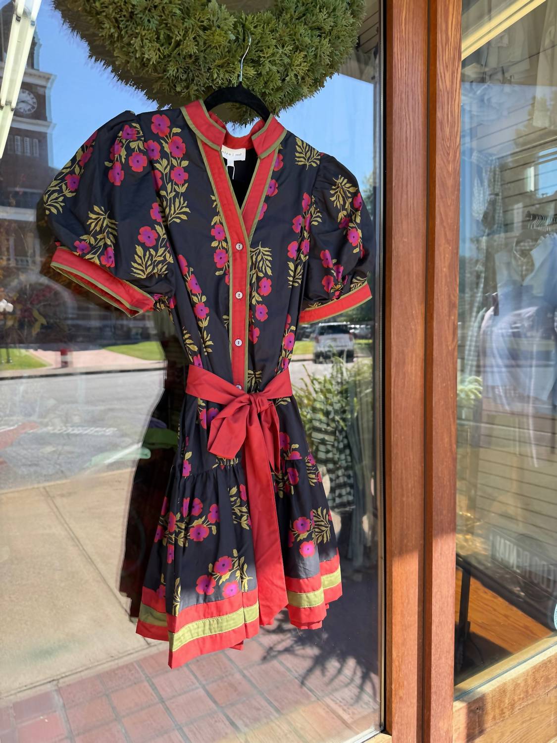 The kind of easy and flattering dress you'll be reaching for all season long. Introducing the Trellis Belted Mini Dress by Entro in the vibrant Midnight Garden floral pattern. This short sleeve dress boasts a cinched waist with a belt and is perfect for the boho chic trend, offering a flattering sheath silhouette. Features include practical side pockets and a V-neckline, making it ideal for holiday parties and seasonal outings. Closure: Button closure.