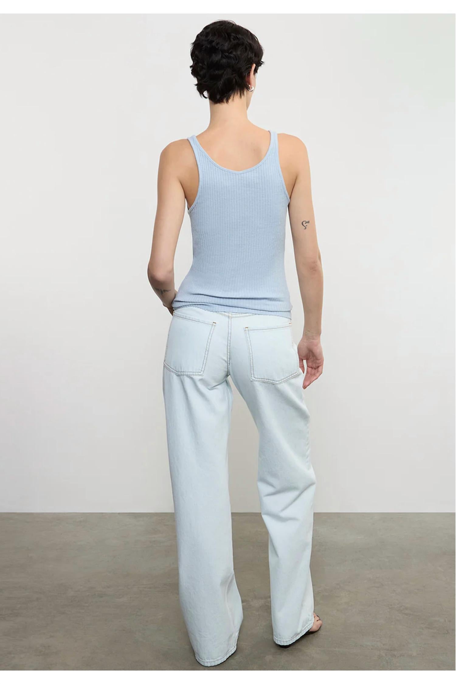 These must-have jeans are fit to perfection. Introducing the Slouchy Straight Jean by Enza Costa, a staple piece designed for effortless style in Bleach Blue. These slightly high-rise, straight-leg trousers are crafted from 100% Cotton Italian denim, offering a classic 5-pocket construction and a loose, easy fit. Made in the USA with a zip closure, these jeans are perfect for warmer weather and seasonally suited for spring. Care: Machine wash.