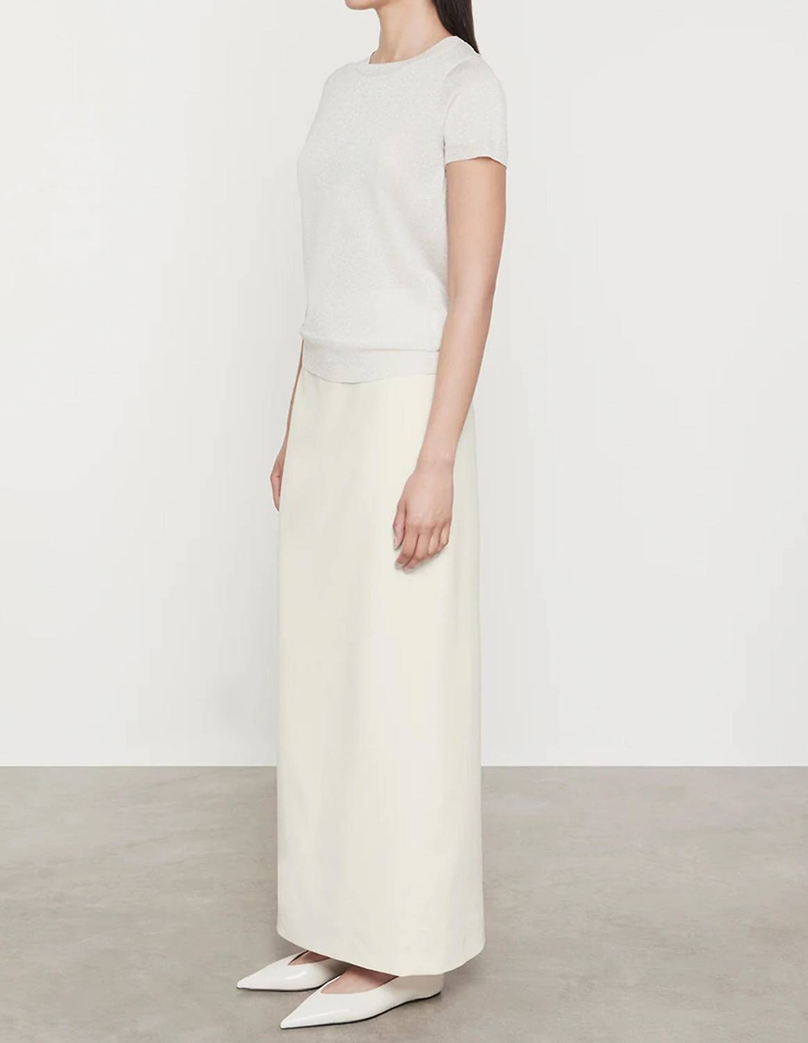 This classic, short sleeve tee will be your go-to staple this season and beyond. Introducing the Lame Knitted Sweater by Enza Costa, a chic addition in a elegant Champagne hue for a refined, minimalist look. This women's tee features a classic crewneck and short sleeves, perfect for spring layering or wearing alone. Material: Knit. Closure: Pull on. Ideal for a Thanksgiving holiday party, this piece offers both style and versatility.