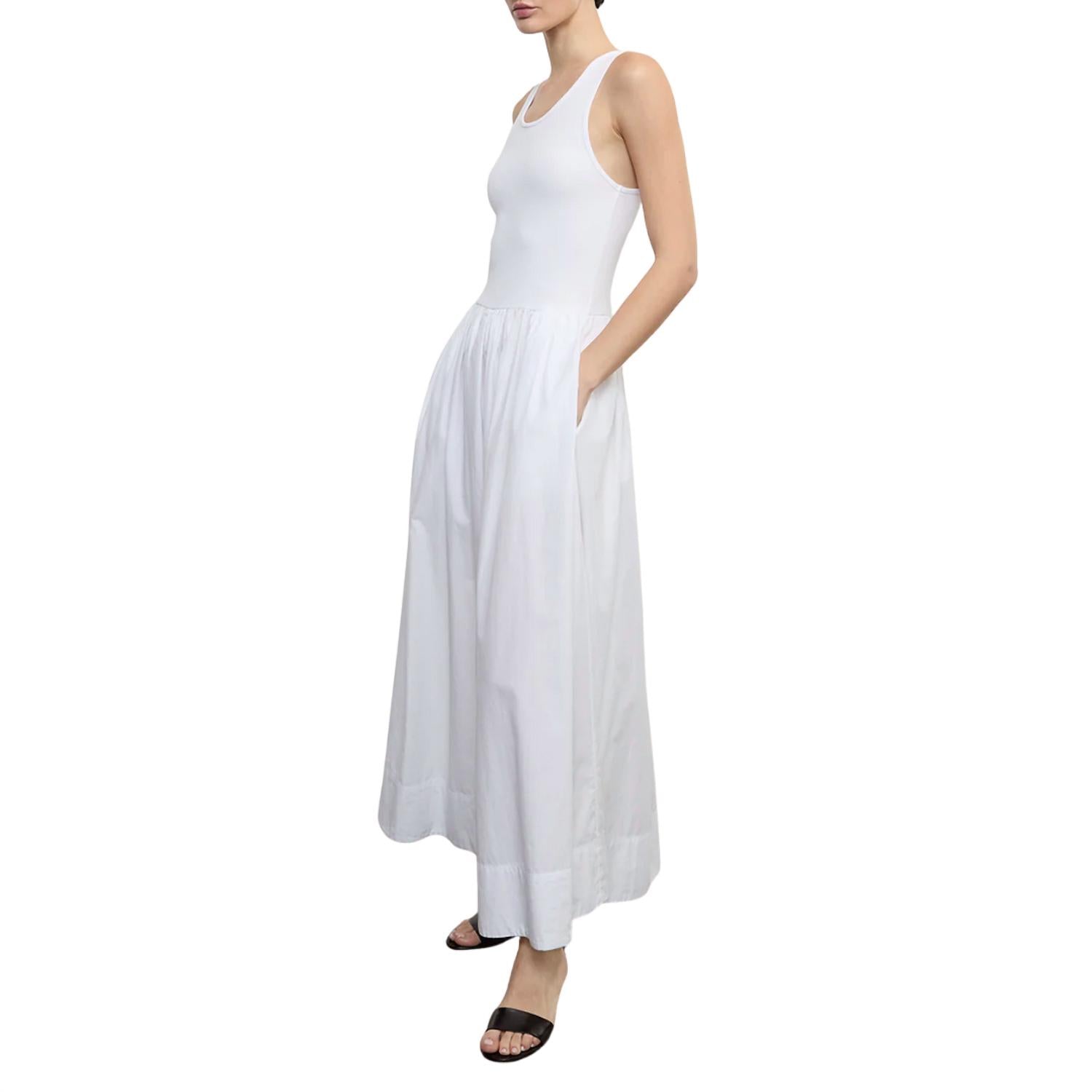Style this maxi with your favorite statement necklace and sandals for the perfect look. Enza Costa Cotton Resort Tank Dress Cotton, Spandex in White Maxi dress Finely ribbed tank bodice Lightweight, structured cotton skirt Side pockets True to size True to size Made in USA