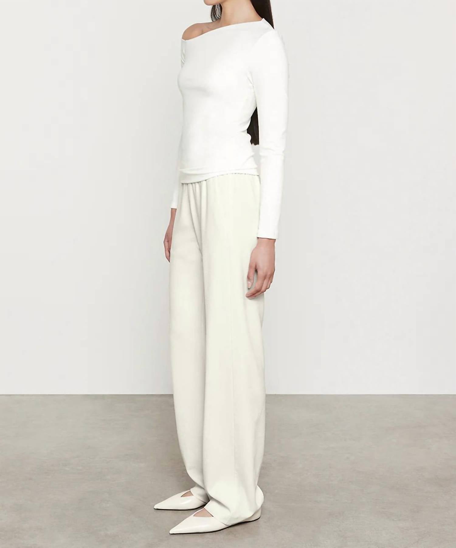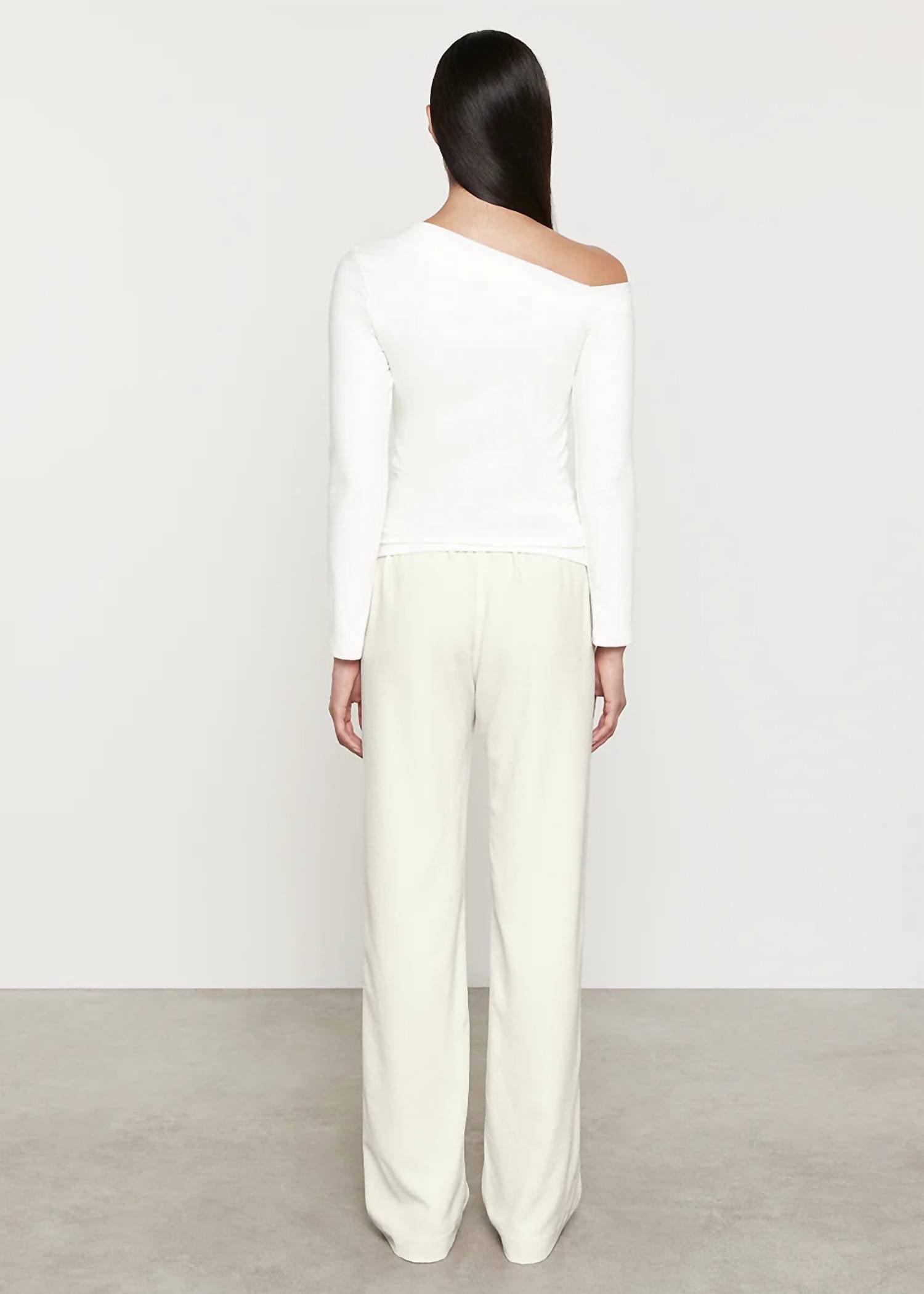 Elevate your wardrobe with the Exposed Shoulder Top by Enza Costa, an off-white essential perfect for those who love minimalist style. Long sleeves and an off-the-shoulder neckline create a relaxed yet chic silhouette. Crafted from a comfortable cotton blend composed of 78% Cotton and 22% Lycra, this top is made in the USA. Closure: Pull on. Ideal for making a statement at evening events or embracing a relaxed vibe for summer.