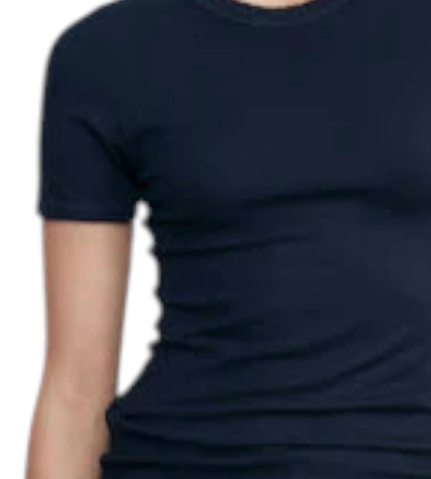 The short sleeve tee you'll want in every color. Elevate your vacation wardrobe with the Silk Knit Essential Short Sleeve Top by Enza Costa, designed for women who appreciate minimalist style. This solid black tee features a classic crewneck and is composed of a luxurious blend of 10% Silk, 87% Viscose, and 3% Lycra. Manufactured in the USA and styled with a convenient pull-on closure, it caters to a seamless, smooth fit. Care instructions include machine washing, promising both comfort and easy maintenance.
