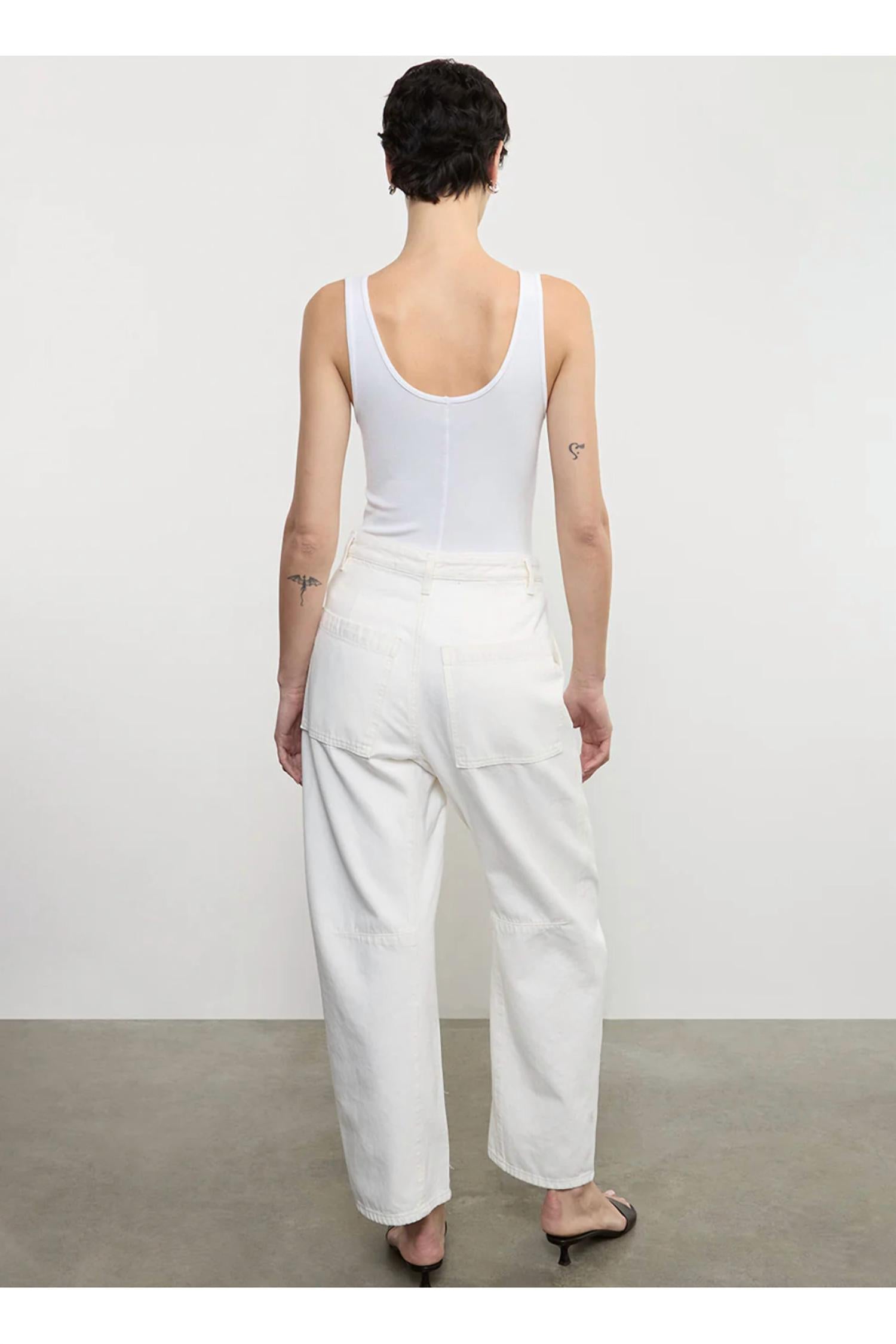 This straightleg pant is both stylish and comfortable. Did we mention the fit is perfection? Introducing the Enza Costa Utility Pant, crafted from 100% Italian Cotton for both style and comfort. Featuring a barrel-shaped silhouette with a slight taper at the legs, these pants come with knee seam details and functional front patch pockets. Made in the USA, these pants offer a modern twist with a zip closure. Care for these chic straight-leg pants with a gentle hand wash.
