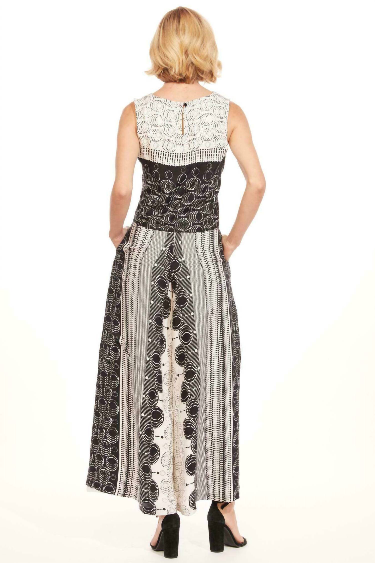 Introducing the Torrey Wide Leg Pants by EVA FRANCO in a chic Bogata Dot pattern, perfect for making a statement. These women's high-rise trousers boast a wide-leg style and are crafted from 97% Polyester and 3% Spandex for a relaxed fit with effortless comfort. The fitted waistband features a convenient back zip closure, complemented by practical side pockets. Pair them with the matching Kaja Top for a cohesive look.