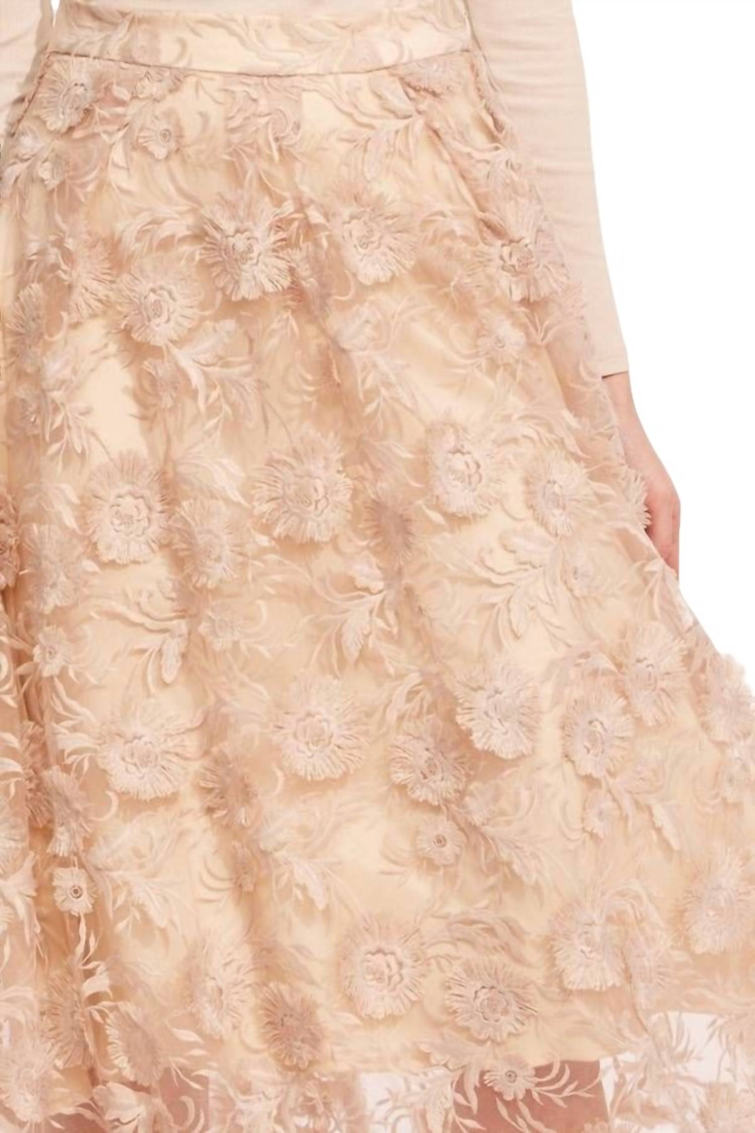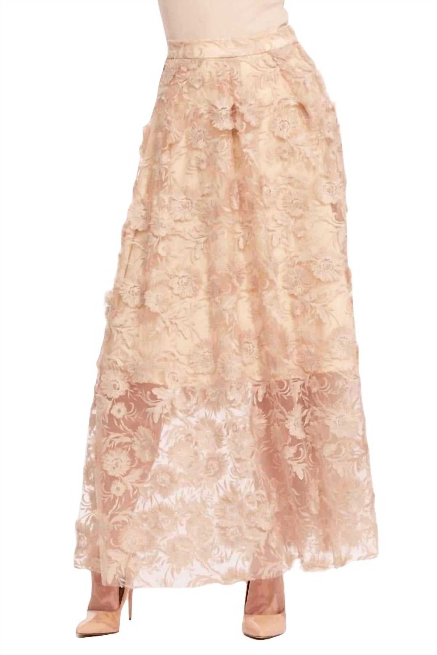 Instantly look and feel brighter wearing our luxurious Anova maxi skirt.3D Embroidered flowers Maxi silhouetteBack ZipLined100% PolyesterMade in USA