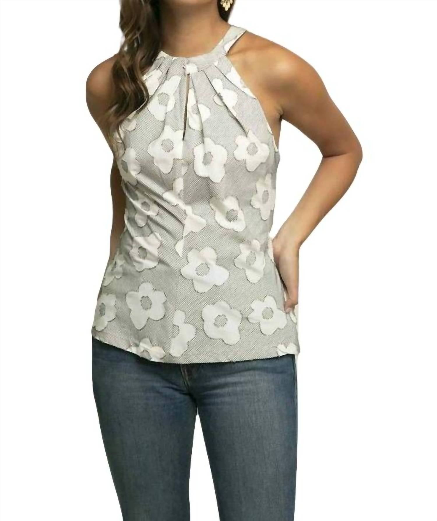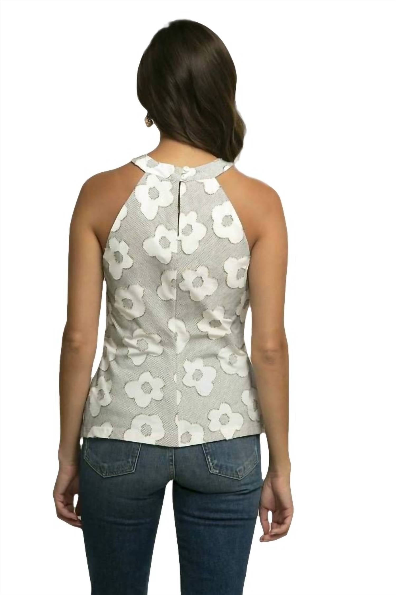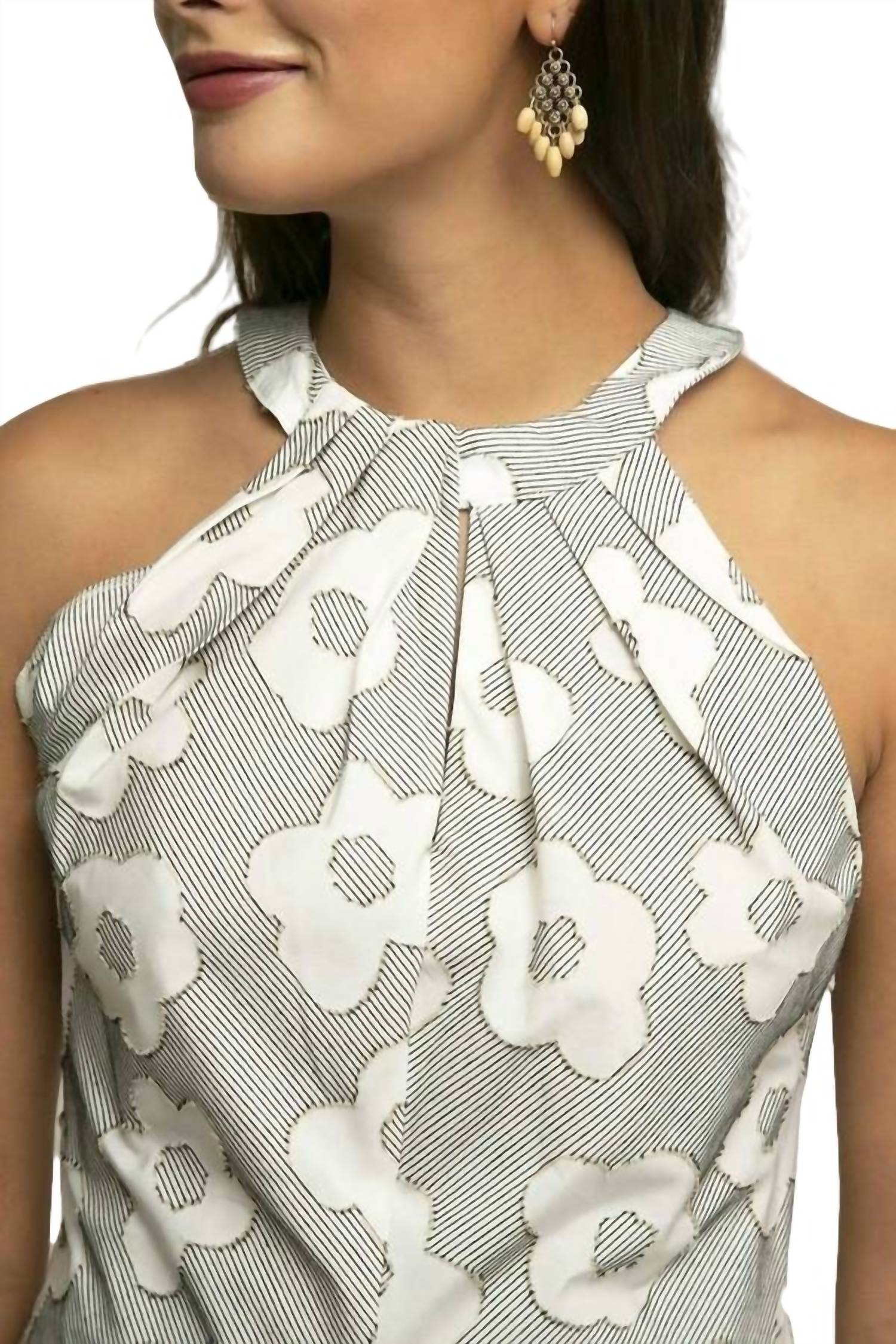 The Ella Top is a halter-style top with a draped neckline that falls in flattering pleats and a side zip for a waist-skimming fit. Our Pound Cake print is a textured striped floral in a soft neutral shade.Cotton/polyesterMade in Los Angeles, USA