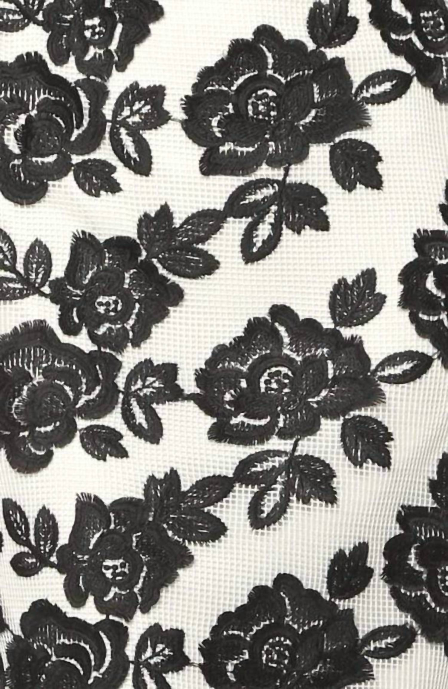 Flute Sleeve. Embellished 3D Rose on Grid Mesh and Black Jersey. 100% CottonContrast, lining. Dry clean. Made in the USA. Regular sizes measure approx. 26" long