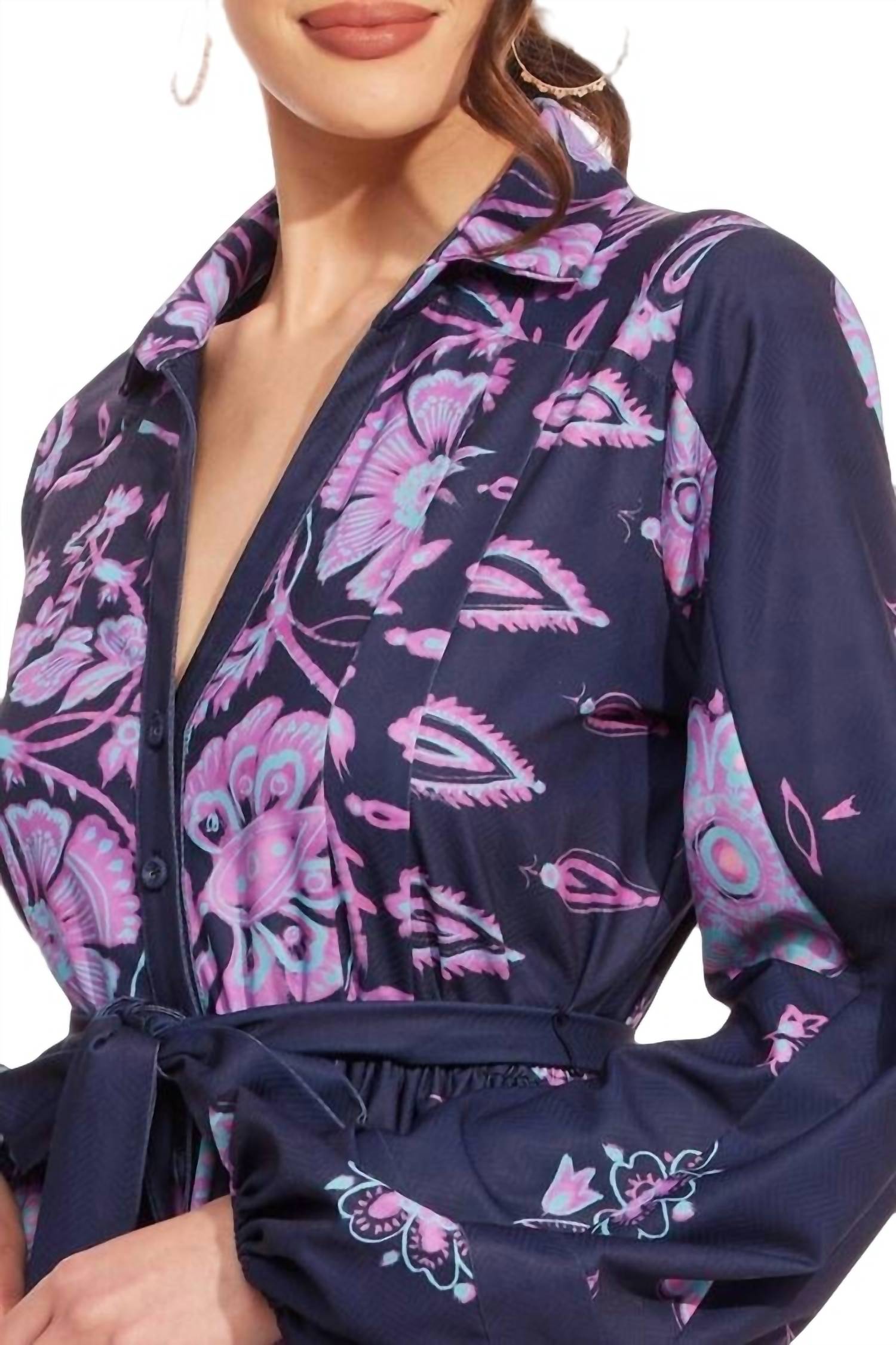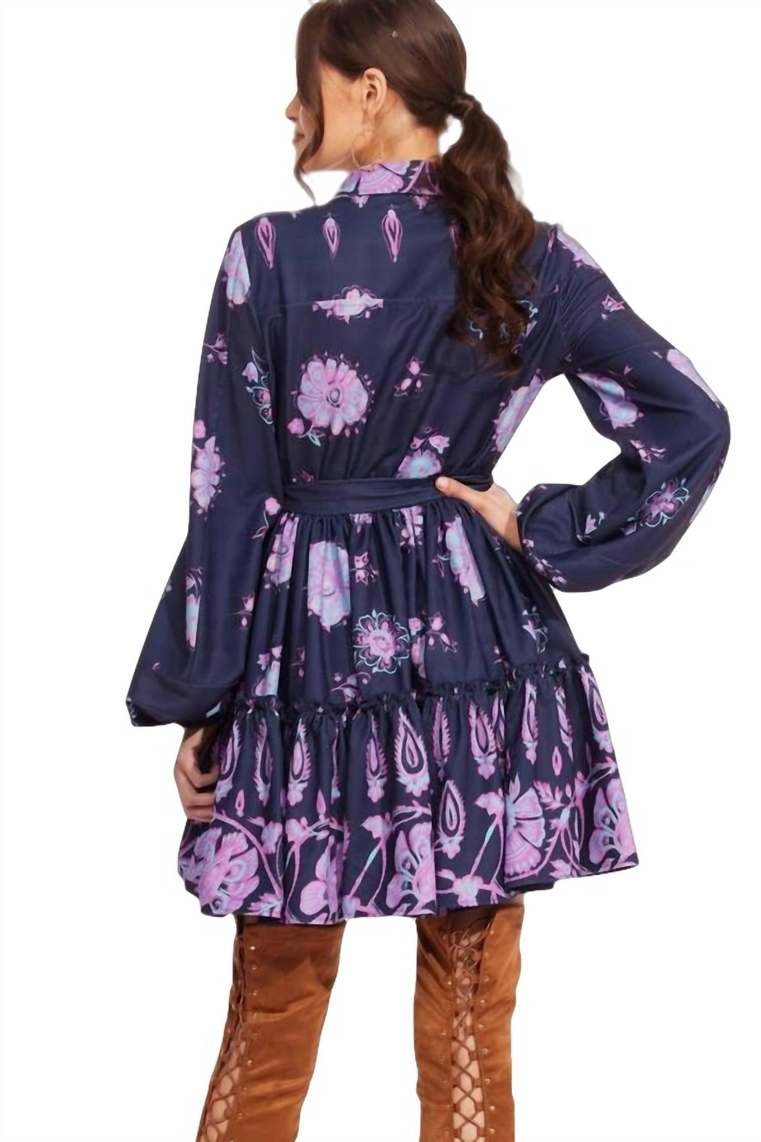 Update your wardrobe with this colorful shirt dress. Finished with long puff sleeves and a classic shirt collar, this fit and flare number will be endlessly versatile. The button down front, and the waist tie cinch in the waist and create a flattering fit. Fit and flare. Long sleeves. Button front. Collared neck. 100% Polyester. Made in USA