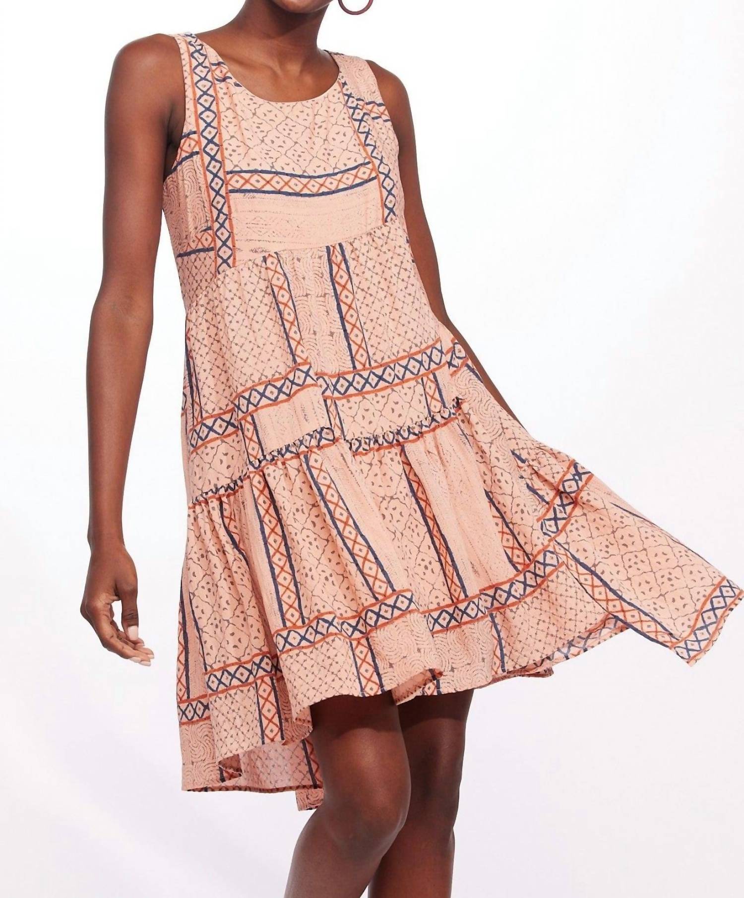 The perfect mini dress for those warmer months. Step into the season with the Hazel Mini Dress by EVA FRANCO, offering a breezy and sassy style perfect for spring. This sleeveless shift dress in Beige Clay features a flirty trapeze silhouette and dazzling geometric print, ideal for holiday parties and beach days alike. Crafted from quality polyester, it is made in the USA and designed for effortless wear with a pull-on closure. Embrace boho chic vibes for your Thanksgiving festivities with this standout piece.
