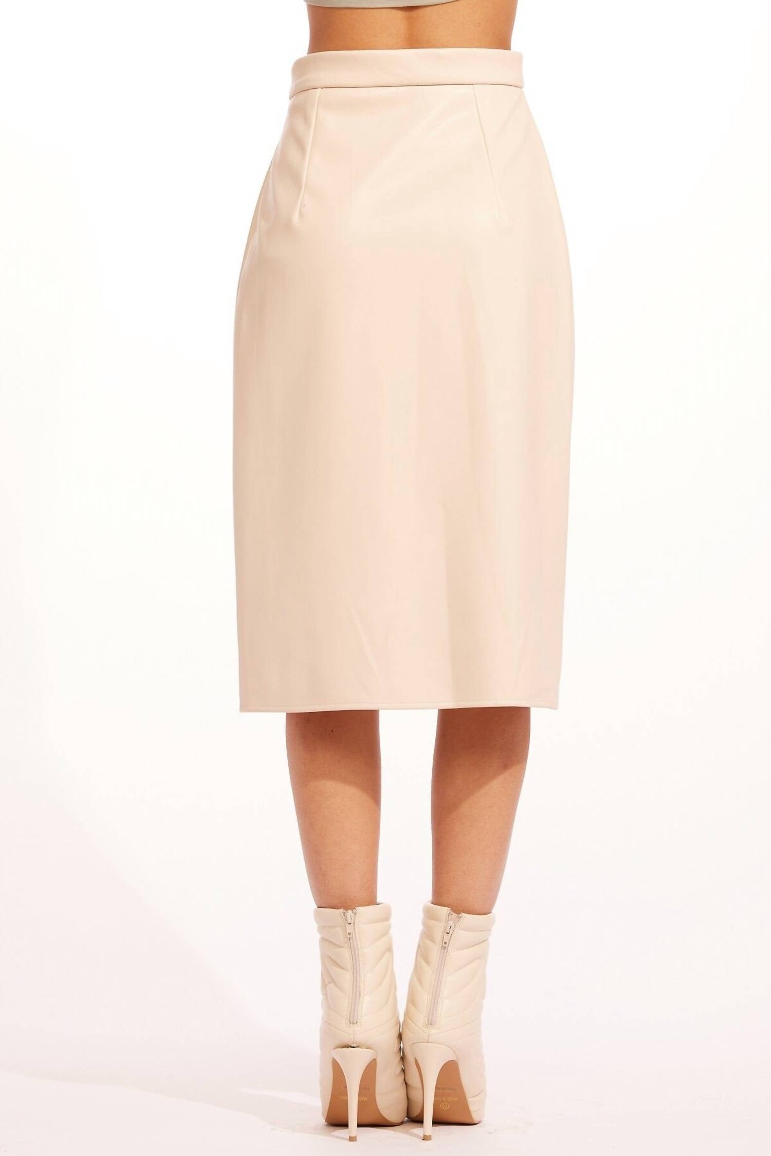 Dress this pencil skirt up with a blazer or down with your favorite tee. So versatile and timeless. Featuring a midi length, rounded hem, and a fitted side zip. 100% Polyurethane; 100% Polyester lining