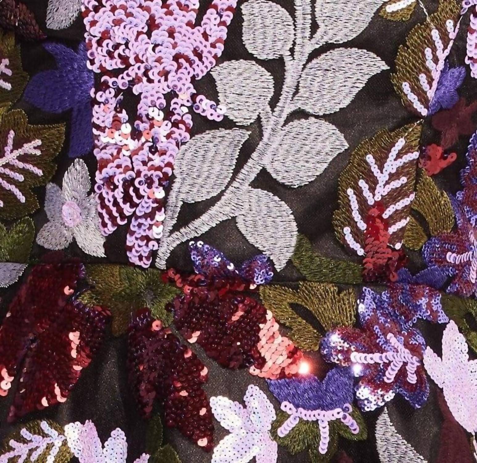 A short and breezy dress for those warmer days. Meet the Serena Mini Dress by EVA FRANCO, a chic addition to any holiday party wardrobe. This sleeveless dress in a captivating Tempest Bloom floral pattern features a delightful A-line silhouette with a bubble hem and a flattering sweetheart neckline. Crafted from 100% polyester, it includes a secure back zip closure for easy wear. Proudly made in Los Angeles, USA, this dress requires hand washing to keep its sequined embellishments sparkling.