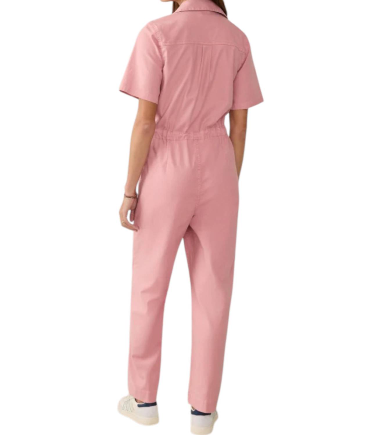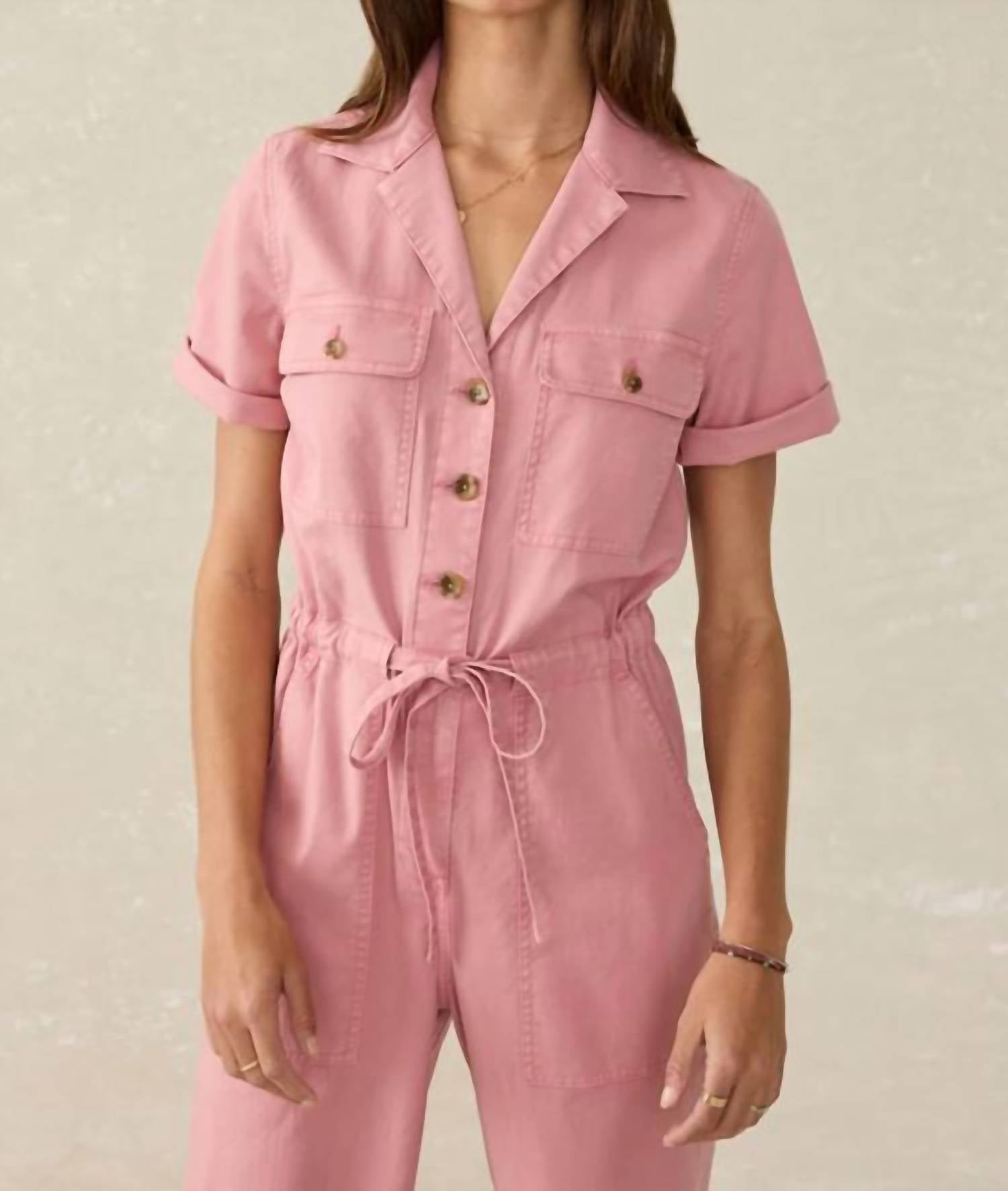 Throw it on and go! Meet the Utility Twill Raven Jumpsuit by Faherty, crafted for effortless style in a rich Baroque Rose hue. This women's jumpsuit features a classic fit with a 27.5" inseam and is made from a sustainable blend of 98% Organic Cotton and 2% Elastane. Designed with a patch pocket at the chest, a self-fabric tie at the waist, and button closure, it's garment dyed for a cozy, well-loved feel. Care for your piece by closing all fastenings before washing, turning it inside out, and machine washing cold on a delicate cycle; tumble dry low, and cool iron when needed.