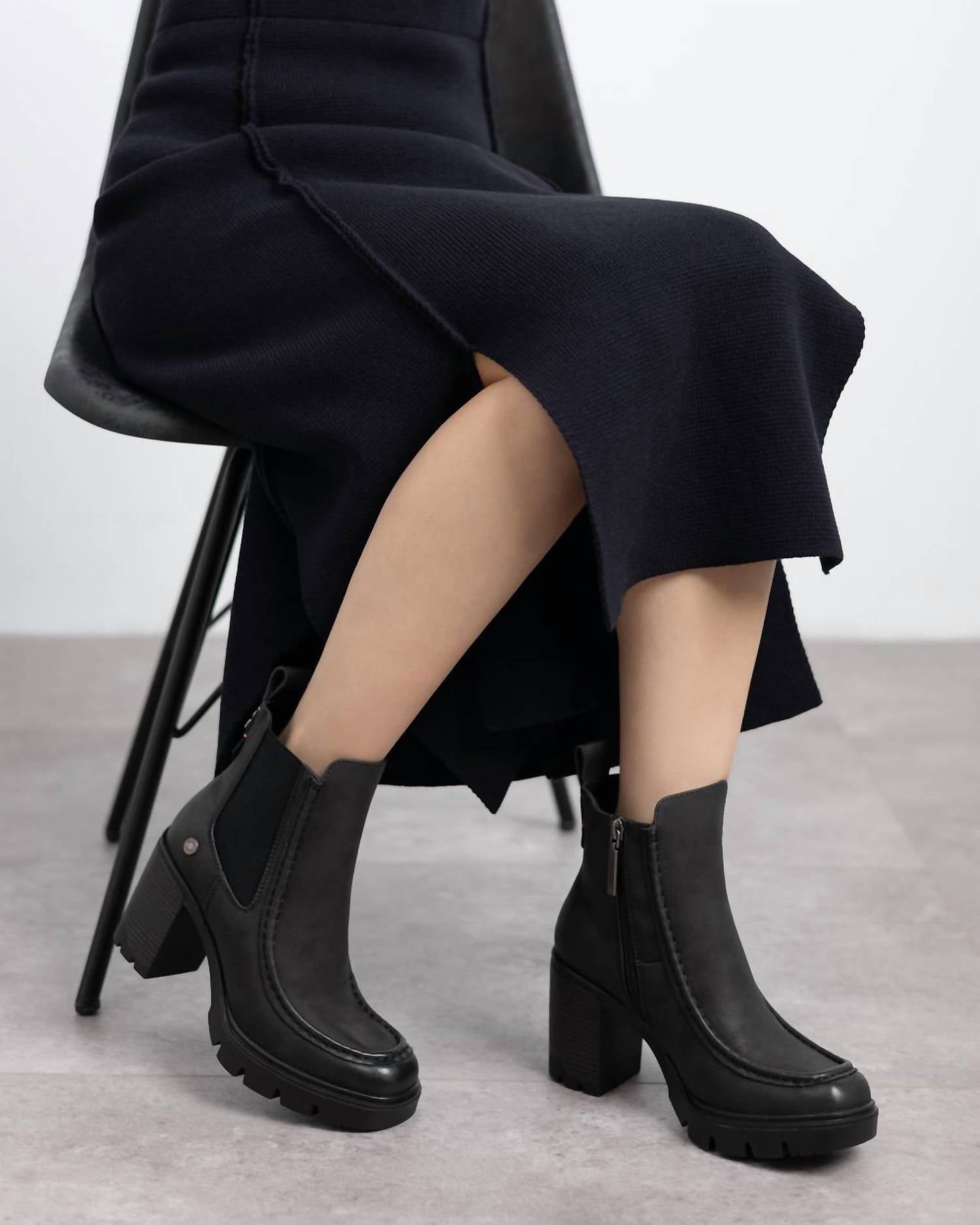 Say hello to the perfect, most versatile boot. The ankle height makes this style easily transition from day to night. Wear them with your favorite skinny jeans and tee for a more laid back look, or pair them with your favorite mini dress and jacket for a night out on the town. Elevate your style with the Women's Refresh Ankle Booties by Xti in a chic hue. Crafted from faux leather, these boots feature an interior zipper closure and a convenient rear pull tab for easy wear. With a 4.33-inch block heel and a non-slip rubber sole, they offer both height and stability. Certified as vegan by PETA, these round-toe booties are a perfect choice for evening events with a vintage flair.