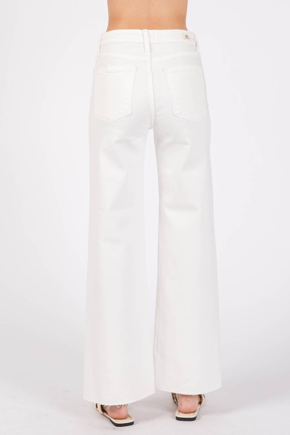 Pair these wide leg jeans with mules, slides or your favorite strappy sandals. Elevate your wardrobe with the Paola A-line Mid Rise Raw Hem Jean by Letters to Juliet, featuring a relaxed fit and a wide-leg style ideal for fashion-forward women. Made from a high-quality cotton blend (92.6% Cotton, 5.5% Polyester, 1.9% Spandex), these jeans offer comfort and style in a minimalist light wash. Originating in the USA, they feature a secure button closure and a solid pattern. Care for these jeans is easy with machine wash instructions, making them perfect for various occasions, including a breezy spring day or a festive 4th of July celebration. Dimensions include a mid-rise of 11", an inseam of 29", and a leg opening of 20.5".