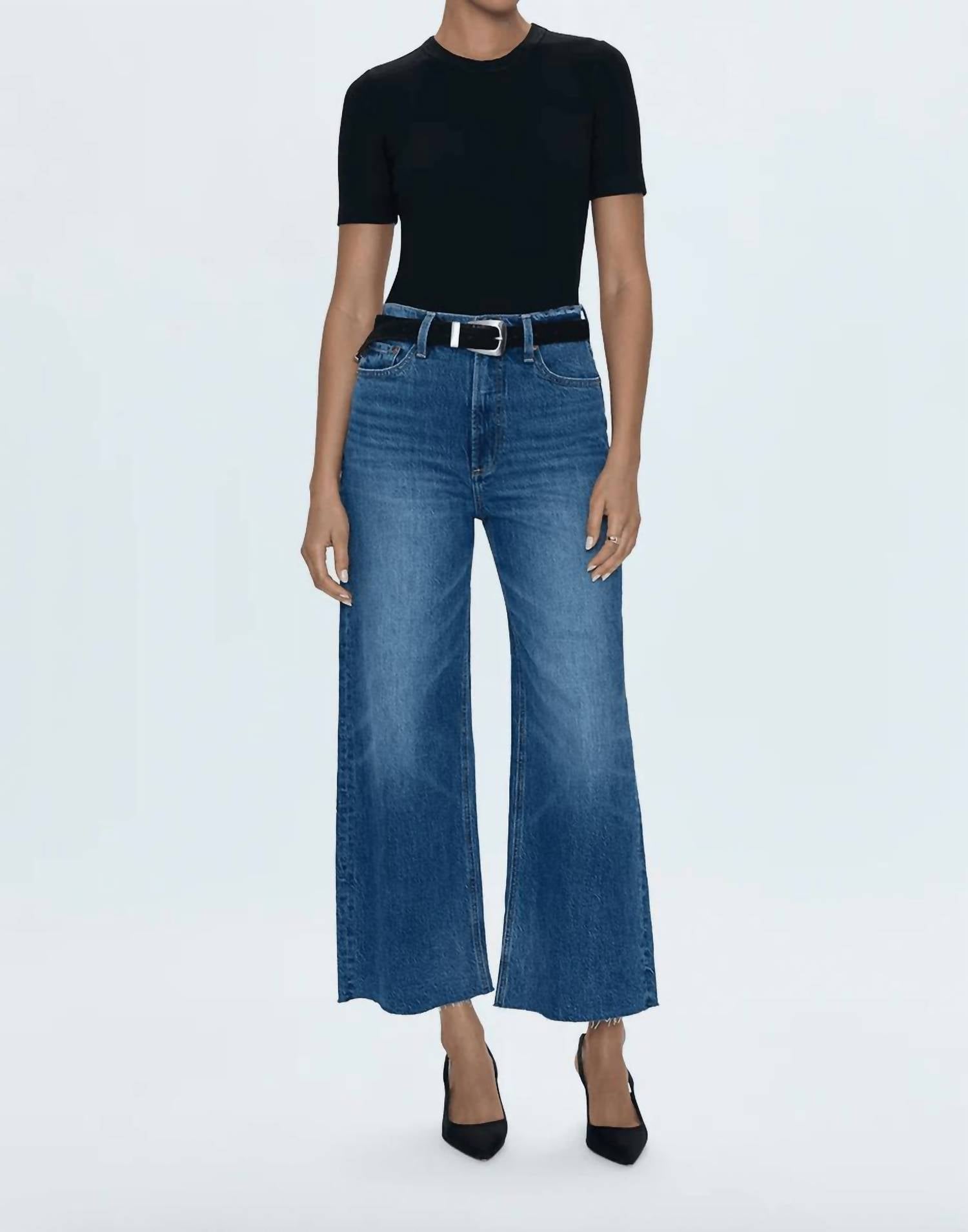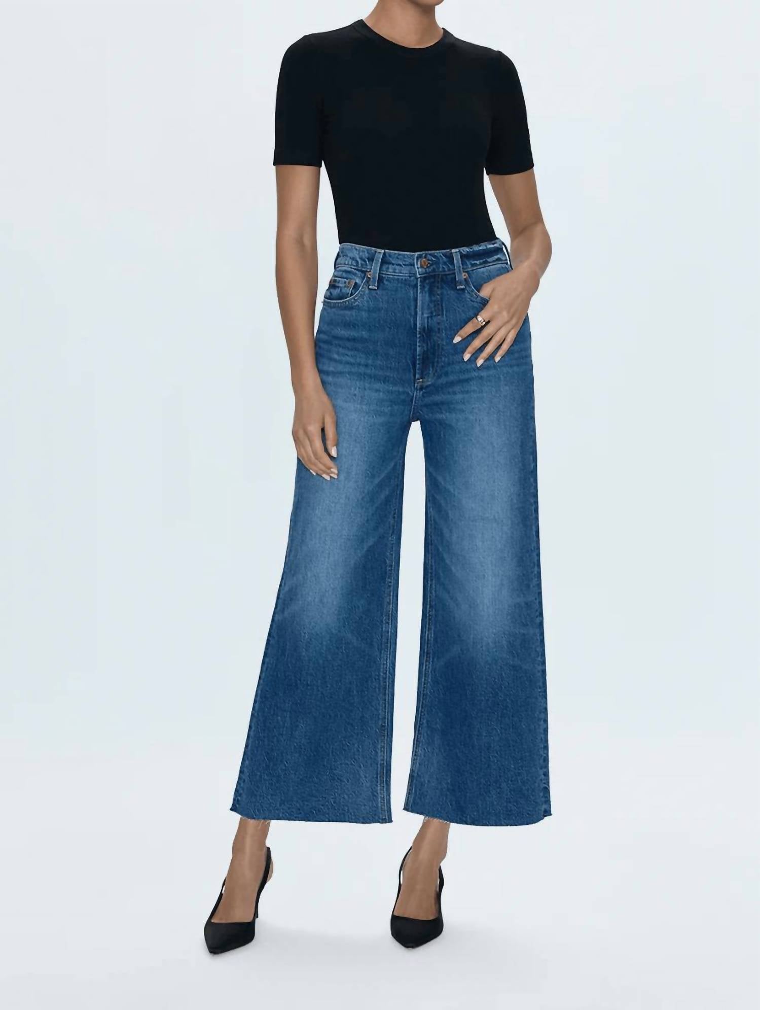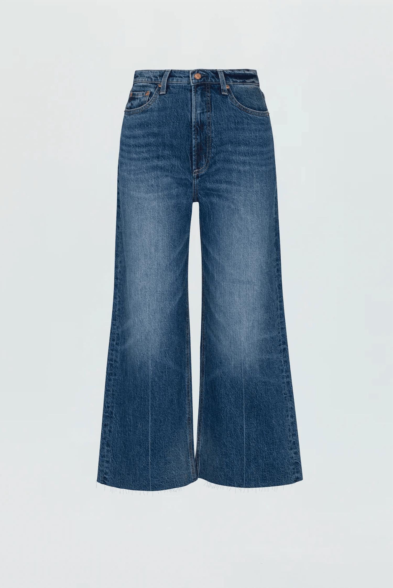 Just as cute as they are comfortable. Introducing the Lana Crop High Waist Jeans by PISTOLA, a chic addition to any wardrobe with a wide leg silhouette. These jeans are crafted from a Cotton Blend incorporating 77% Cotton, 22% Tencel, and 1% Spandex, ensuring both comfort and structure. Sporting a high-rise waist and breezy cropped length, they feature a raw finished hem and button closure. Made in an imported Palladium dark indigo wash with subtle fading, they perfectly balance style and ease.