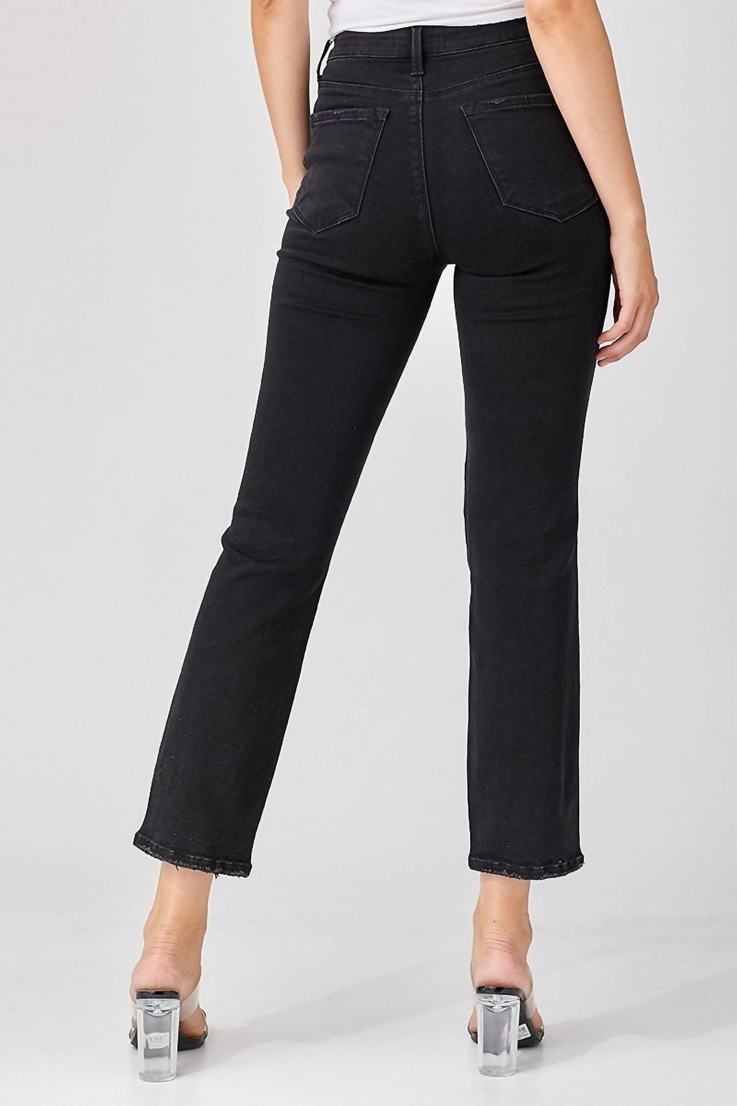 We especially love this cropped jean with a cute pair of slides or sandals. Introducing the Relaxed Distressed Jeans by RISEN, a chic option for any vacation wardrobe. These women's black, solid-patterned jeans feature a mid-rise waist of 10.5 inches and a straight leg design with an inseam of 28 inches, providing a regular fit. Crafted from a cotton blend comprising 64.8% Cotton, 29.8% Polyester, 6% Viscose, and 1.8% Spandex, these jeans offer both comfort and style. Closure Type: Button closure. Pockets: Yes. Perfect for a minimalist summer look, they are easy to care for: machine wash and tumble dry. Model Info: Height 5'9", Waist 24", Hips 35".