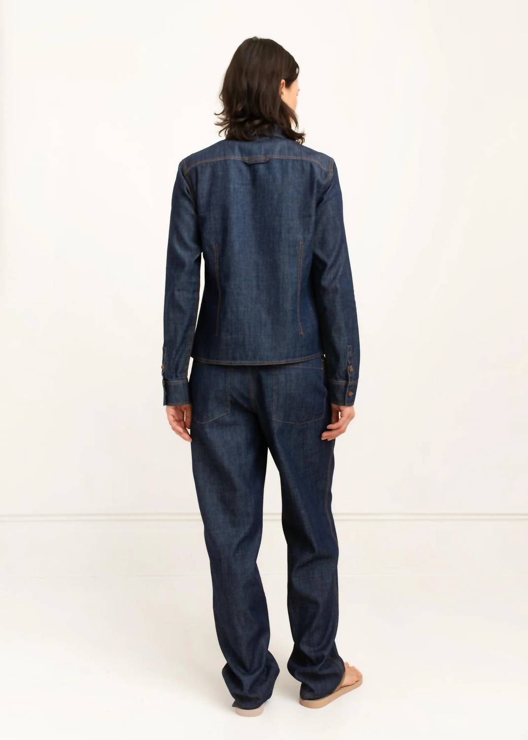 These must-have jeans are fit to perfection. Introducing the Agathe Denim Pant by Paper Label, a must-have for your wardrobe in a rich indigo hue, perfect for fall. These full-length pants feature a high-rise, straight leg, and a slightly tapered bottom for a flattering fit. Crafted from 100% cotton denim, these solid-patterned pants offer durability and effortless style for a range of occasions, whether for everyday wear or a back-to-school wardrobe staple. Care is easy with machine wash cold instructions; just remember to wash them inside out for best results. Enjoy the presence of pockets, adding practicality to this chic 90s fashion-inspired piece. Model is wearing a size Small with measurements of 29.5" waist, 39" hip, and 31" inseam.