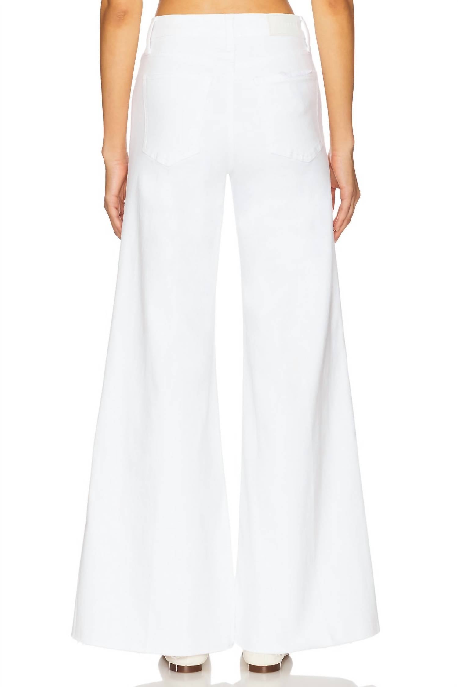 A flattering silhouette that's suprisingly versatile. Discover the Izzy Mid Rise Wide Leg Jeans by PISTOLA, designed in a chic Vivid White solid pattern, perfect for embracing the minimalist trend this Summer. Crafted from a comfortable cotton blend, these jeans feature a wide leg style complemented by a 10.5" mid-rise and a 32" inseam, offering a flattering fit for various occasions, from vacation to Thanksgiving gatherings. The practical design includes functional pockets and a secure button closure. Easy to care for, simply machine wash to maintain their crisp appearance.