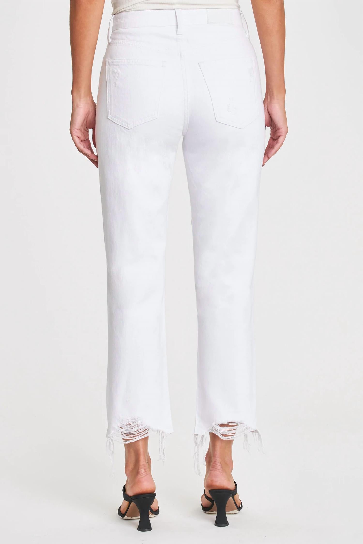 These must-have jeans are fit to perfection. Introducing the Charlie High Rise Straight Jean by PISTOLA, designed to offer a sleek and timeless silhouette. These jeans feature a high rise with a 27" inseam and a 14" leg opening, coupled with a fitted waist and hip that transitions into a straight leg. Crafted from 100% Cotton, they boast a classic white wash with heavy fraying at the hem and a hidden button closure. They are machine washable and available in a true-to-size fit, with the option to size up for a more relaxed feel.