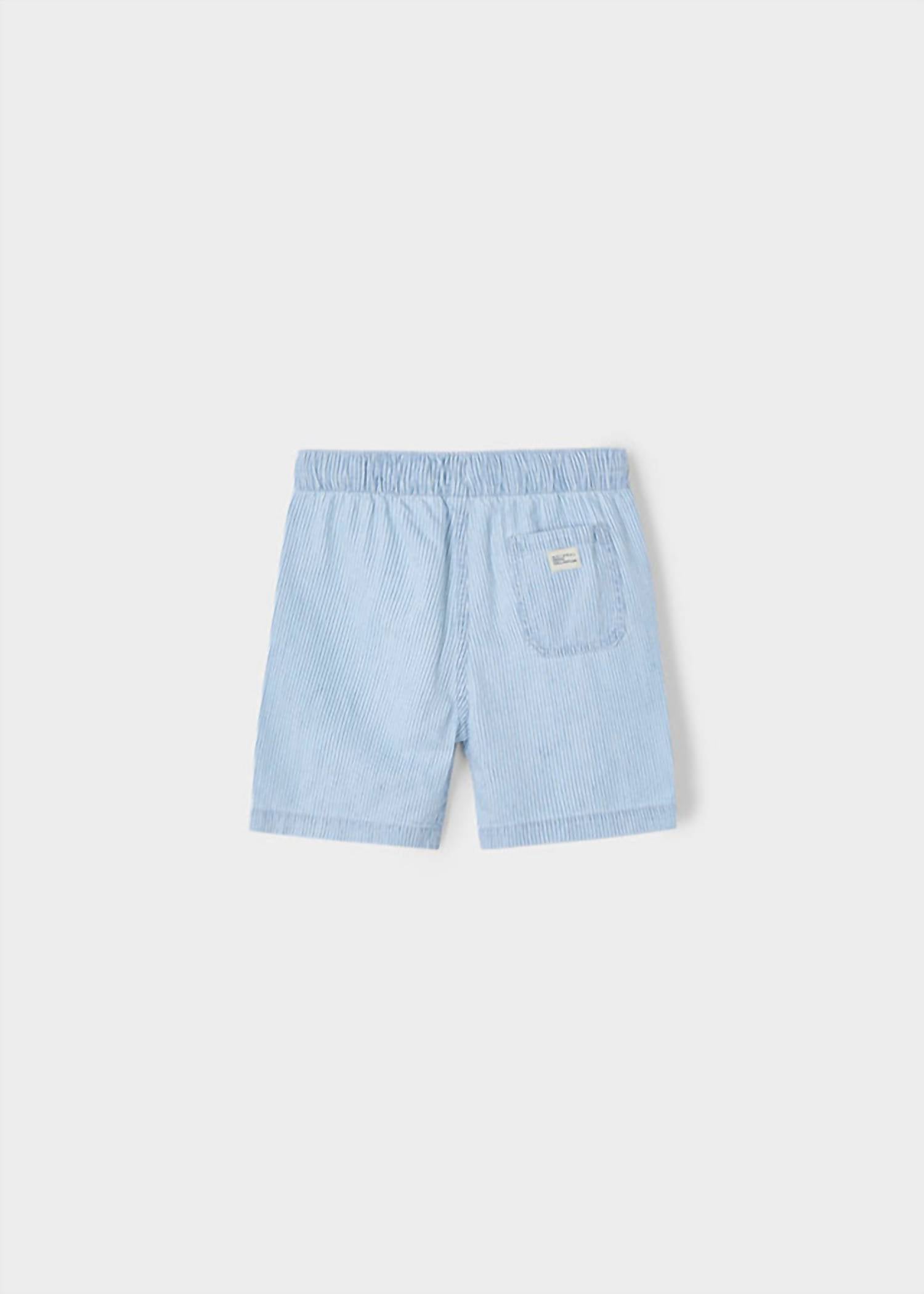 Discover the Boys' Rail Denim Bermuda Shorts by Mayoral, crafted for ultimate comfort and style. These shorts feature a pull-on waistband with a drawstring for an easy fit and come in a light wash denim with a distinctive railroad stripe, perfect for summer holidays. Made from 100% cotton, they are as soft as they are stylish with angled slit pockets and a single rear patch pocket. Care is a breeze with machine wash cold instructions, and they're designed to be tumble dried on low.