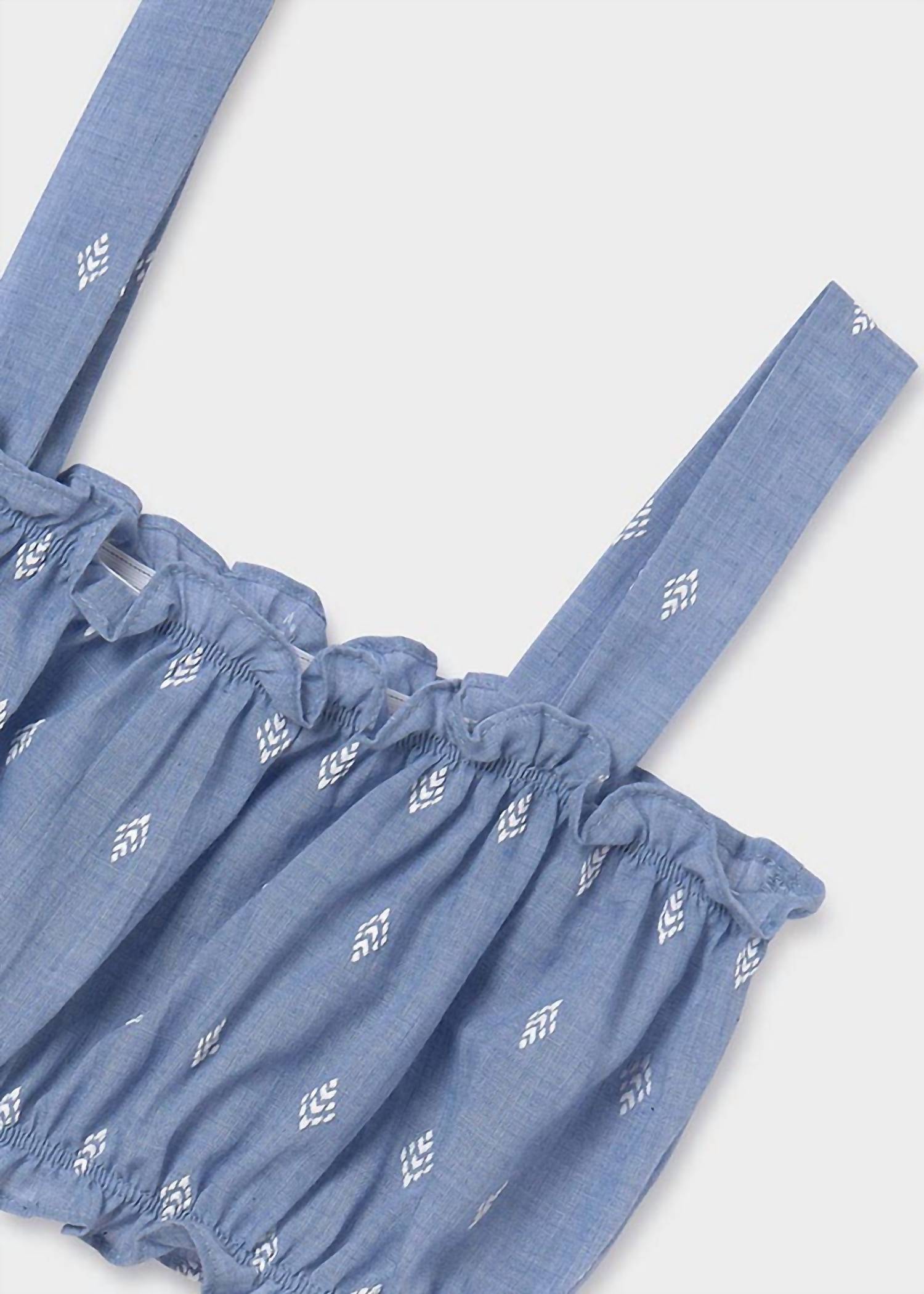 Introducing the Girls' Ruffle Printed Blouse & Crop Top Set by Mayoral, a charming ensemble in cornflower blue that offers the flexibility of two stylish tops in one. This set features a flowy printed blouse with a button-up closure and a matching crop top bandeau with straps. Composition: 80% Polyester, 20% Cotton. Perfect for creating a coordinated look effortlessly.