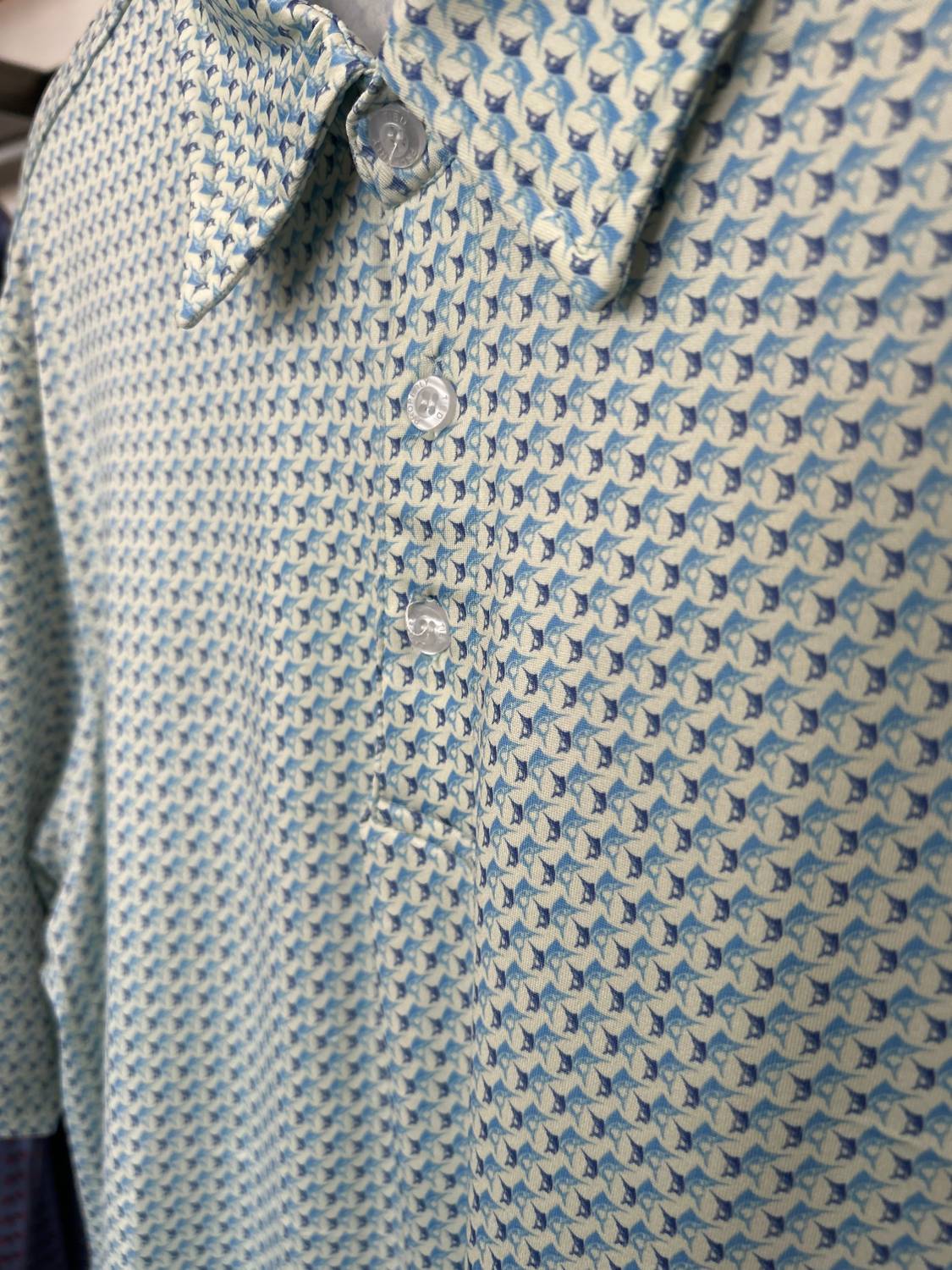 Experience the perfect blend of comfort and flair with the Men's Inlet Polo by Properly Tied. This short sleeve polo, available in a stylish Marlin pattern, is composed of a lightweight 95% polyester and 5% spandex blend that provides moisture-wicking performance and a touch of stretch. It features a classic collar and button closure, making it versatile for both the golf course and casual outings. With its tailored design suitable for warmer months, it seamlessly pairs with the Fairway Performance Pant or Mallard Short.