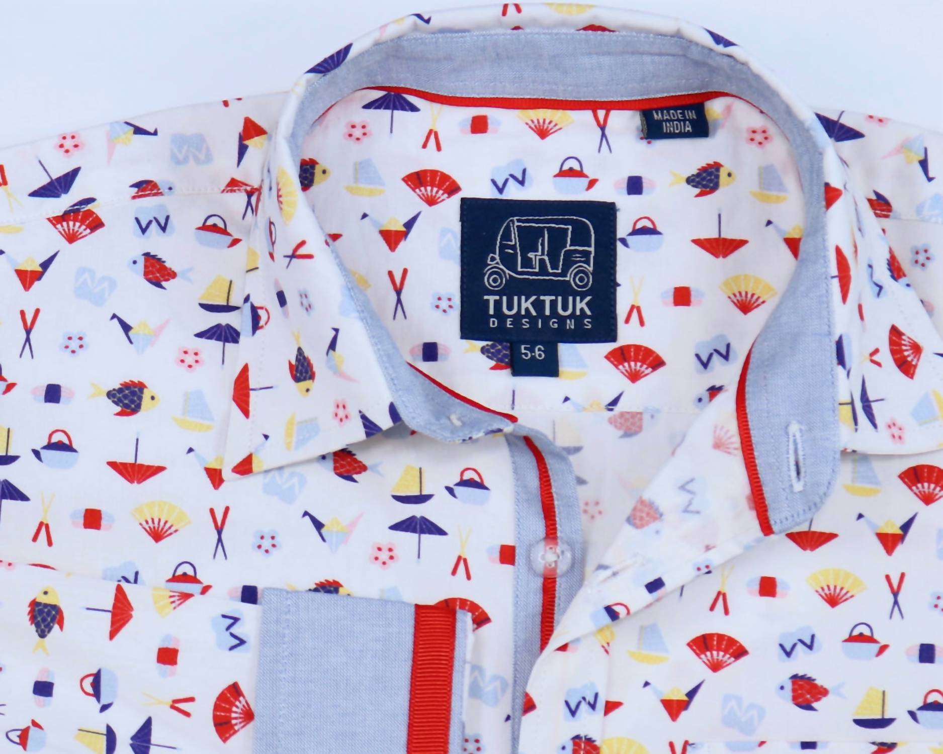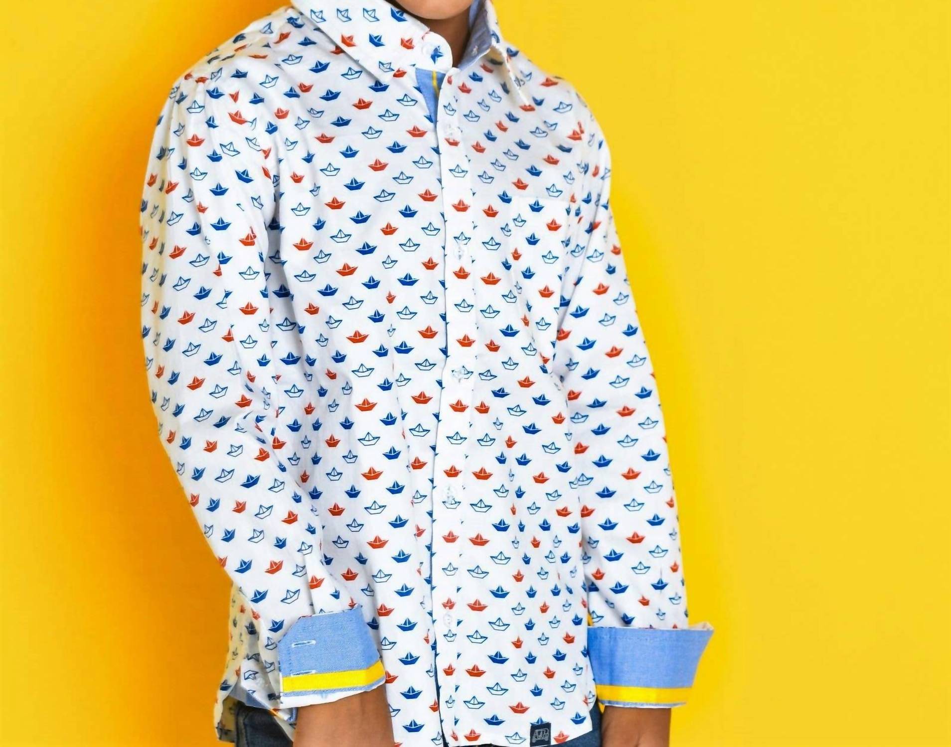 Tuktuk Designs - Boys Origami Sailboats Button Down Shirt