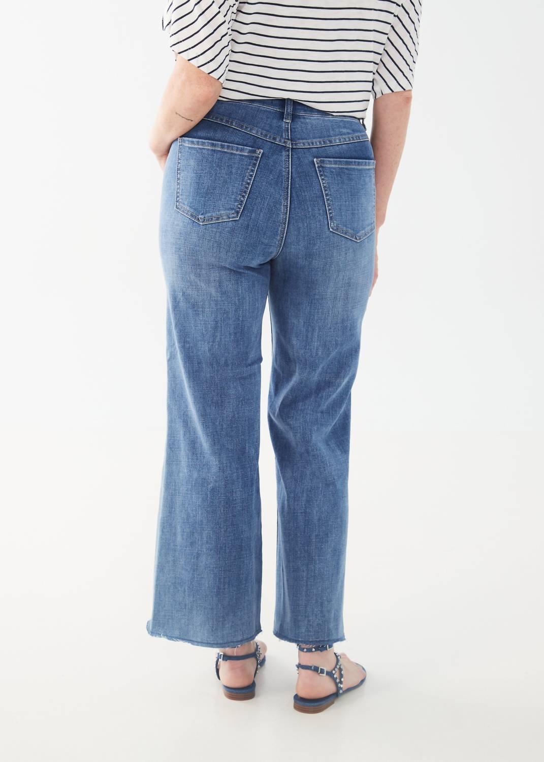 Pair these wide leg jeans with mules, slides or your favorite strappy sandals. Wide leg jeans. 5 pocket style. With belt loops. Button and zip fly closure. Machine wash cold. 100% Cotton.