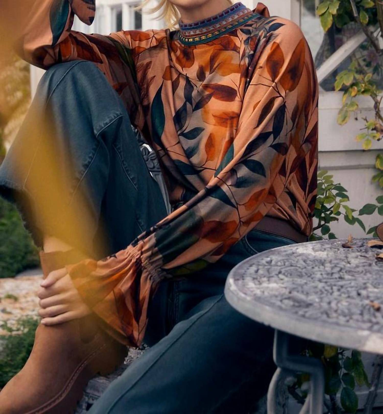 A timeless blouse that will never go out of style. Elevate your fall wardrobe with the FDJ Mock Neck Trimmed Top in the captivating Miriam floral print. This patterned blouse showcases long voluminous sleeves with delicate flutter trim, and the pull-on style is accentuated by a playful back-tied bow. Crafted from a comfortable 95% Viscose and 5% Elastane blend, it promises both style and comfort for any holiday party this Thanksgiving season. Care is easy—simply hand wash in cold water, lay flat to dry, and iron at a low temperature.