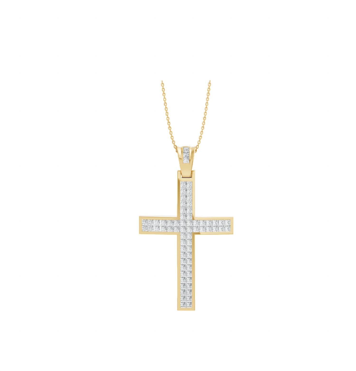 Introducing the Stan Collection 1.20 Ctw Natural Diamond Pendant by AAMIAA, a fine jewelry masterpiece. This elegant pendant, crafted in 14k yellow gold weighing 3.3 grams, showcases 67 princess shape natural diamonds. Each stone displays a total carat weight of 1.2, setting off the vibrant glow of the gold. Ideal for those seeking a stunning addition to their jewelry collection.