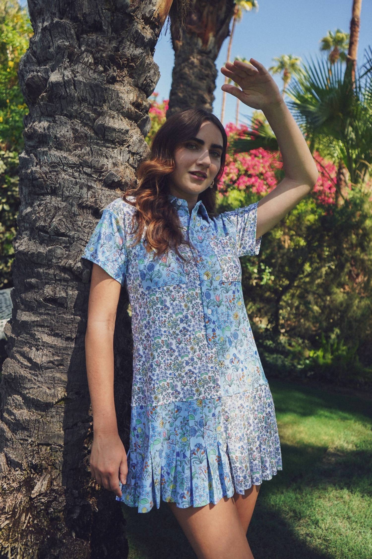 The perfect mini dress for those warmer months. Experience the whimsical charm of the Aspen Dress by SMITH & QUINN, a delightful addition to any wardrobe in vibrant Spring Sprig floral. Crafted in their signature stretch polyester, this shirt dress features short sleeves and a drop pleated waist for a flattering silhouette. The polo-style collar and button closure add a classic touch, and pockets bring practical style. With wrinkle-resistant fabric, it's perfect for effortless wear; simply machine wash for easy care. 85% Polyester 15% Elastane.