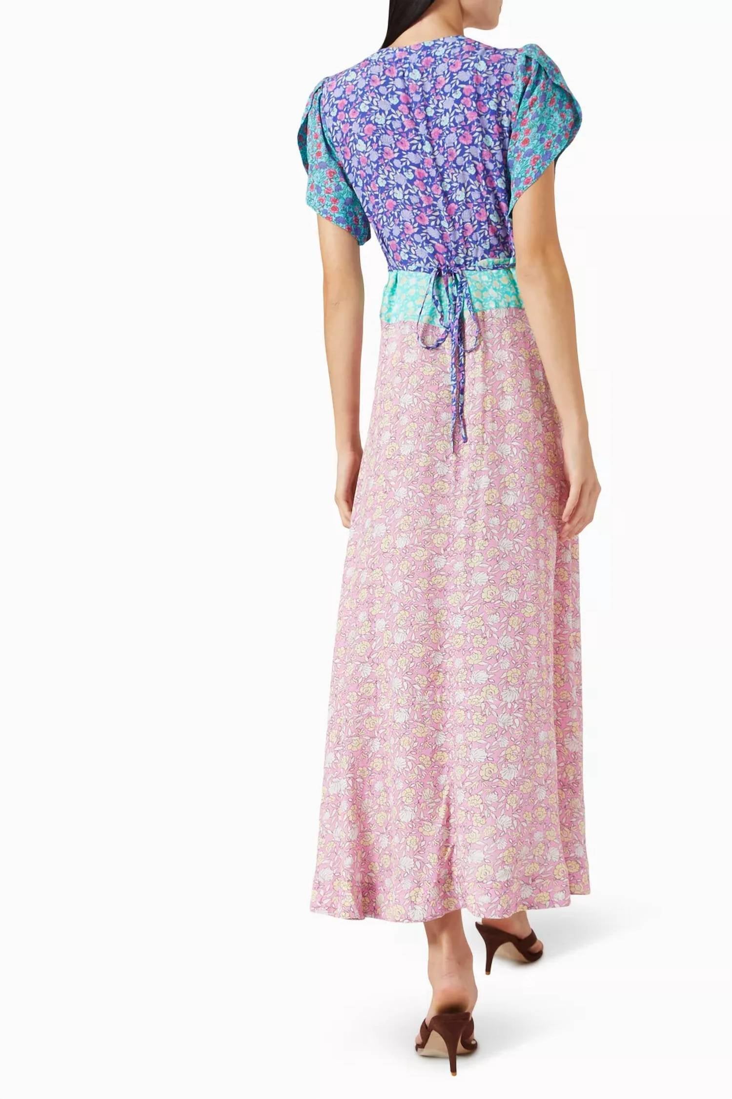 Just add slides or mules and you are good to go. Discover the Novara Midi Dress by RIXO, inspired by a vintage charm for a modern boho chic look. This delightful dress features short sleeves and an empire waist silhouette in a striking multicolor floral pattern. Crafted from 100% lightweight viscose crepe, it offers a cozy fit with a concealed side zipper and functional buttons. For care, please dry clean only to keep this beauty looking its best. Ideal for spring vacation outings or Easter festivities.
