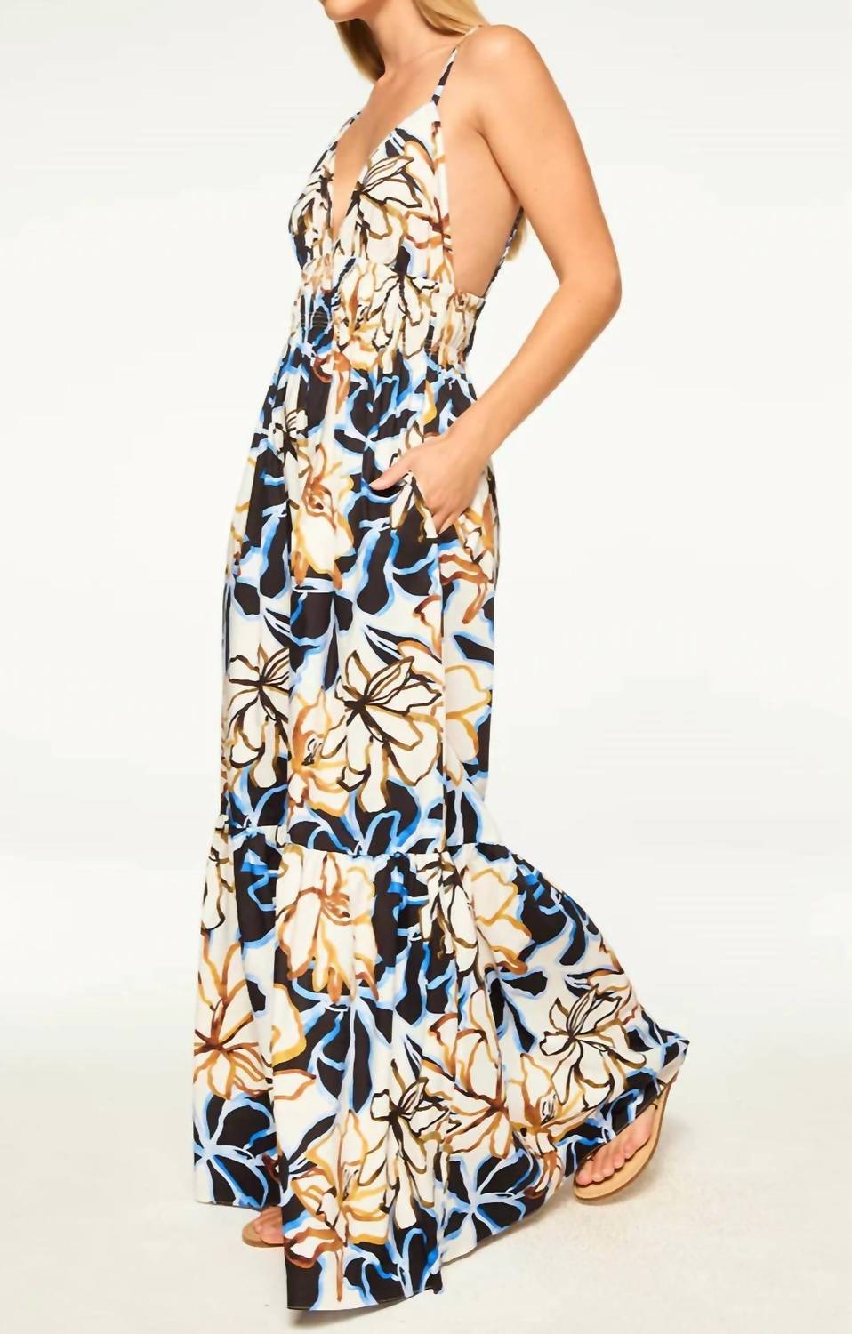 A maxi dress that is just as cute as it is comfortable. Embrace effortless style with the Misa Los Angeles Cintra Maxi Dress, a Boho Chic piece in a Bold Blooms floral pattern. Featuring delicate spaghetti straps and a deep V-neckline, it offers a flattering fit with an elastic ruched band under the bust, side slit pockets, and a wide ruffle hem. Made in the USA from 100% cotton, this dress combines comfort with elegance, making it perfect for any summer vacation or Easter occasion. Closure: Pull on. Care: Dry clean only.