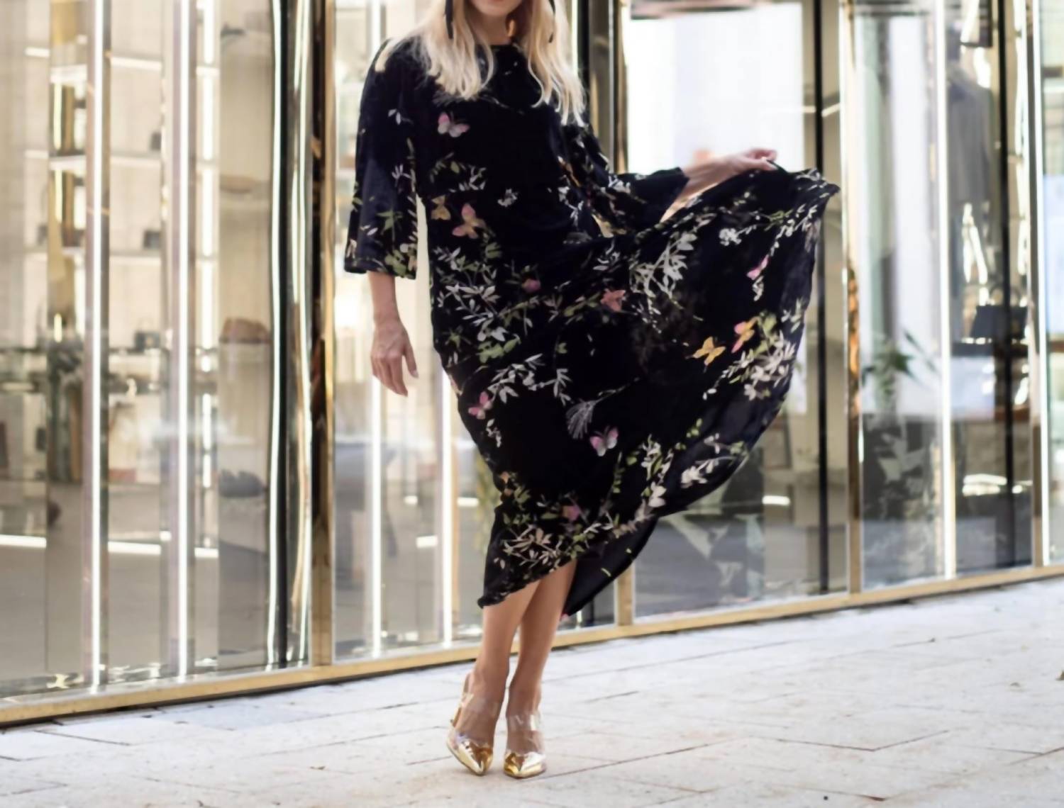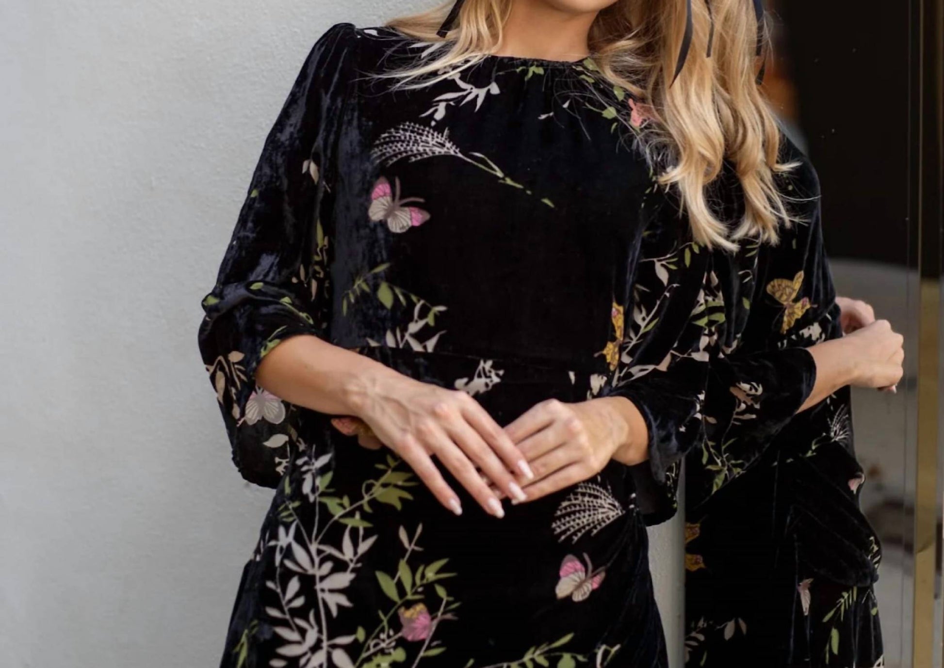 Show off just the right amount of skin in this adorable assymetrical dress. The Alice Velvet Asymmetrical Dress by Esteem Couture is a stunning choice for any elegant event. Featuring three-quarter wide cape sleeves with fitted sleeves underneath, this dress combines unique design with practicality. Made from luxurious velvet in a floral burnout pattern, it brings a sophisticated edge to your wardrobe. The dress is crafted with a zip closure to ensure a secure fit and elevate any special occasion. Perfect for women seeking a vintage-inspired look this fall, especially ideal for holiday gatherings.